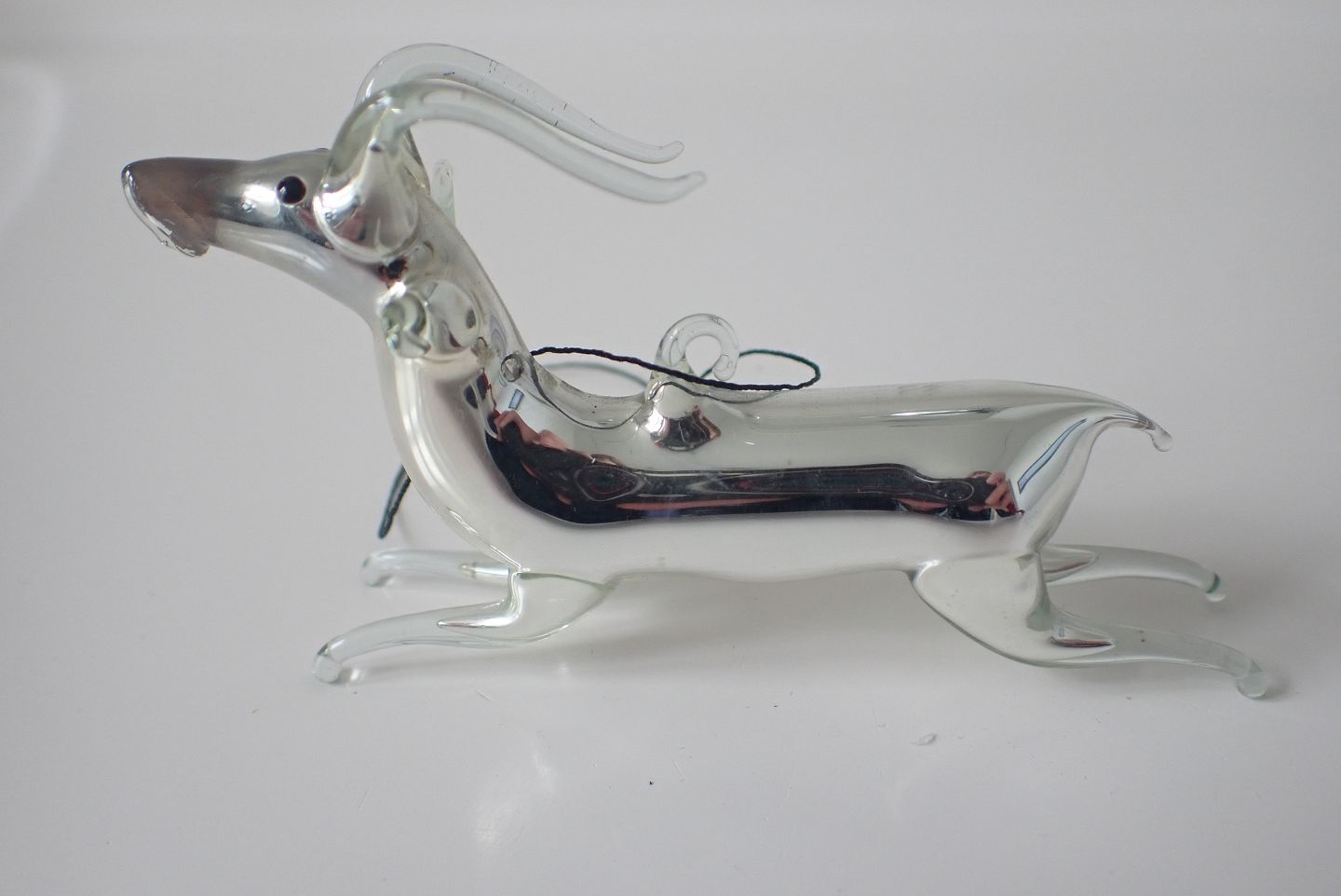 Glasjulepynt - sjælden glashjort, sølvfarvet. Med glasophæng. Leipzig tidlig 1900-tal. Højde. 5,2 cm. Længde: 9 cm. Hel og fin stand uden afslag.