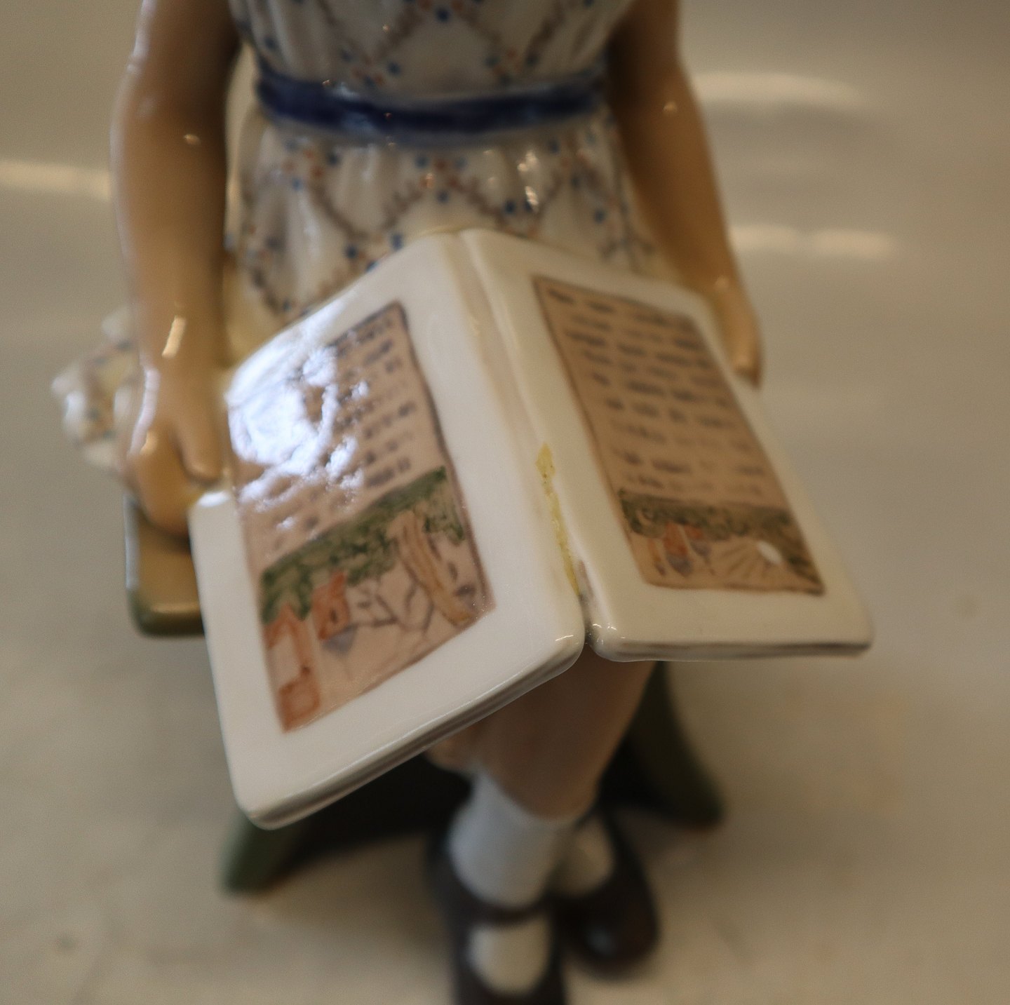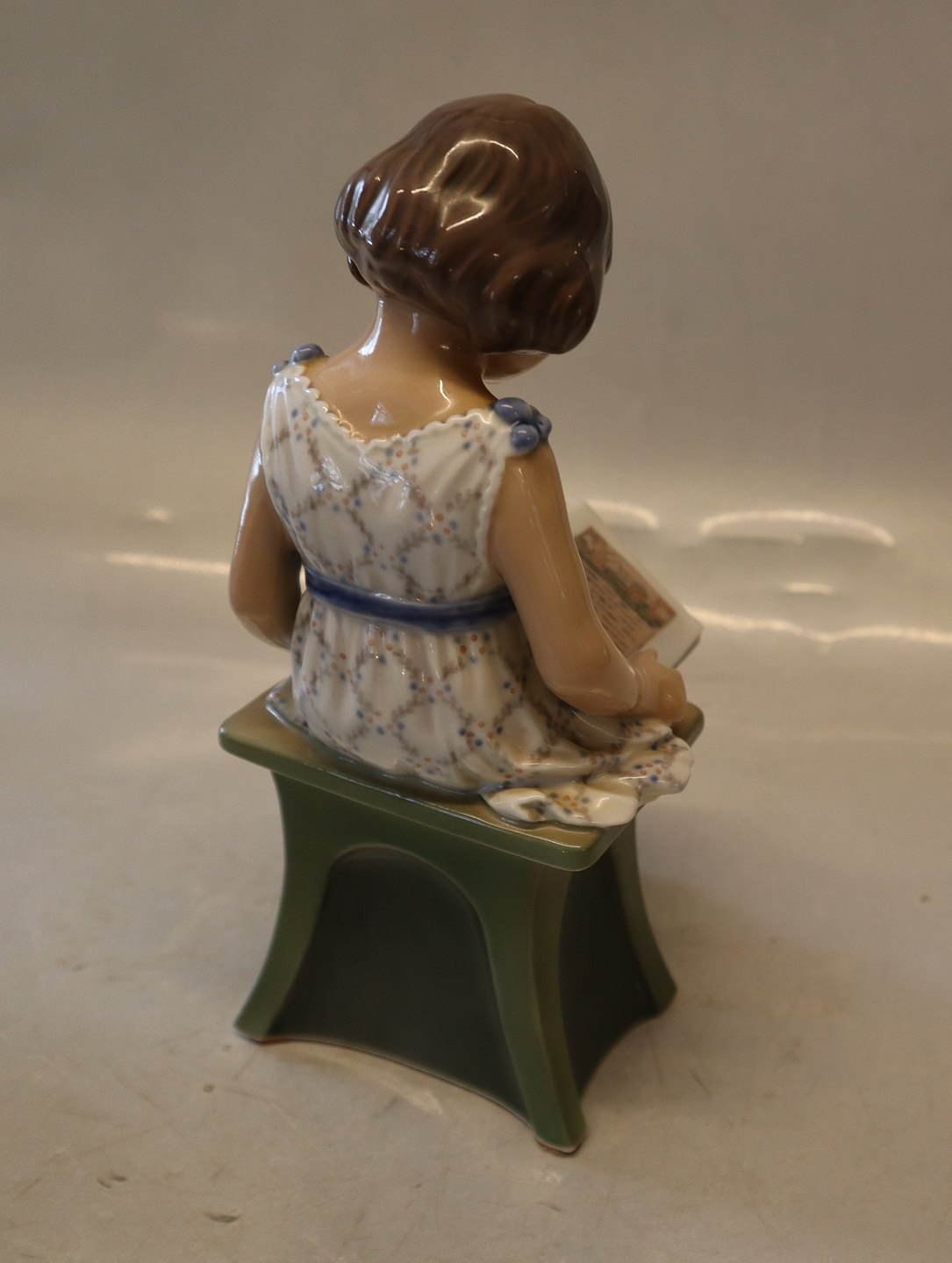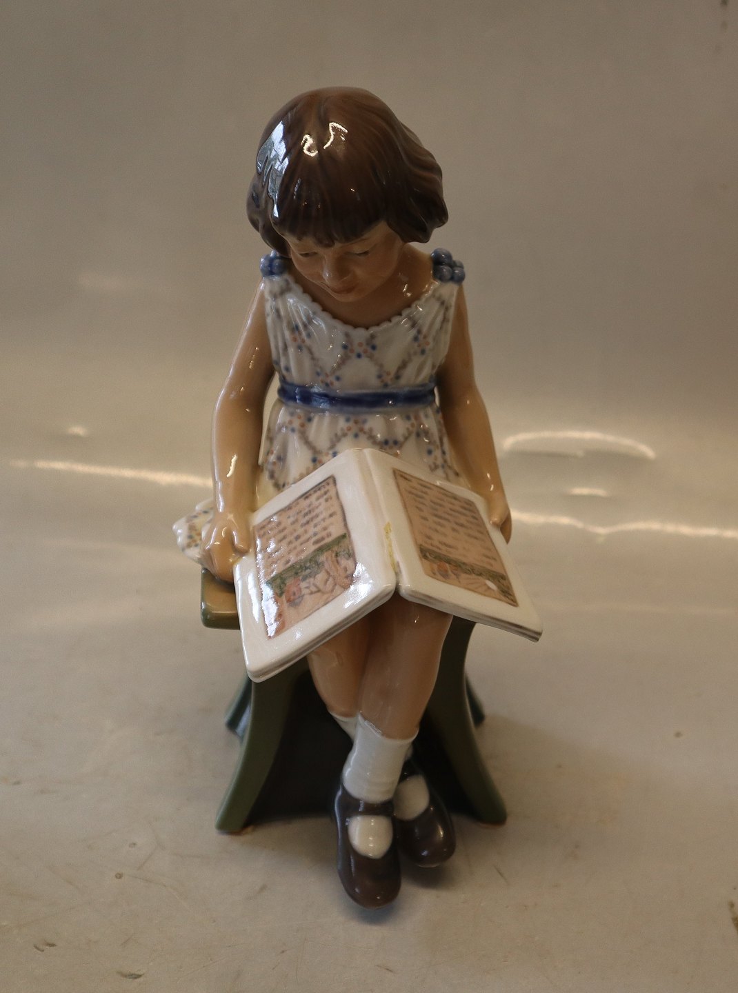 Dahl Jensen 1107 Pige med bog (DJ) 21 cm. Mærket med kongelig krone og DJ Copenhagen i hel og fin stand. Læsende pige