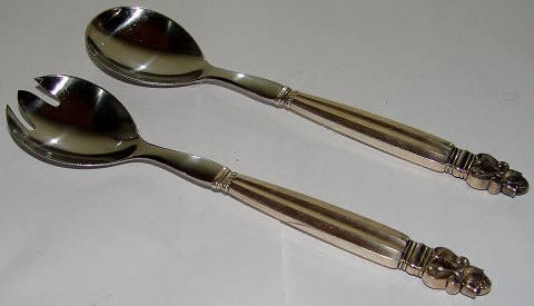 Georg Jensen Konge Sterling Sølv Salat Sæt. Måler 23,8cm og er i god stand.