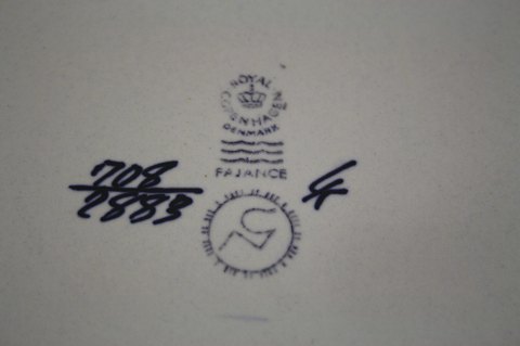 Text zugänglich auf Dänische: Aluminia/Royal Copenhagen, Kunstfajance, Baca, Firkantet fad med fugle. Designet af Niels Thorsson. Nr. 708/2883. 16,5 x 16,5 cm. Højde 3,3 cm. I. sortering. Arkivfoto. Denne er fra Aluminia og i flot stand. Pris: 300 kr. stk. Lager: 1