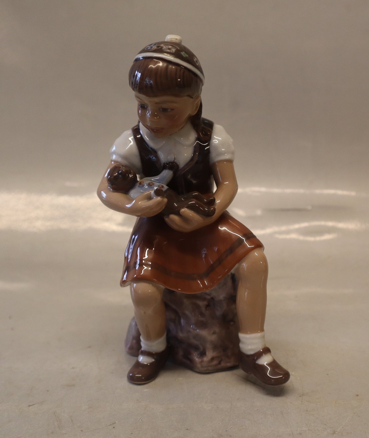 Dahl Jensen 1295 Lille pige "Bente" 14,5 cm (DJ). Mærket med kongelig krone og DJ Copenhagen i hel og fin stand. 1. sort