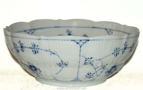 Royal Copenhagen Musselmalet Riflet, større rund skål med bølget kant.