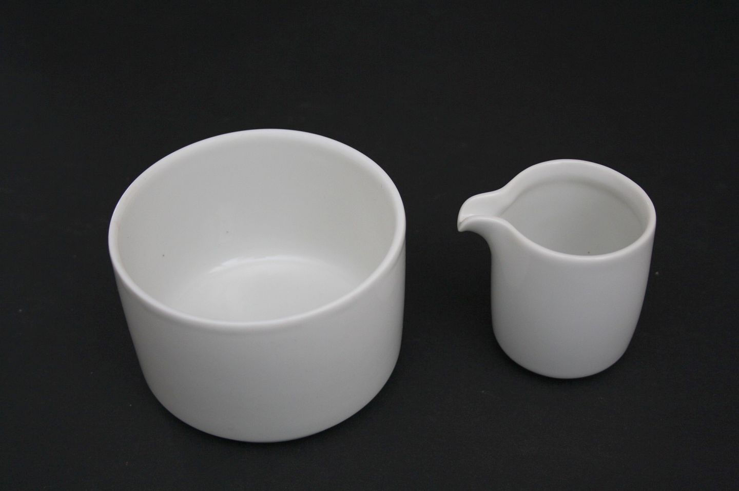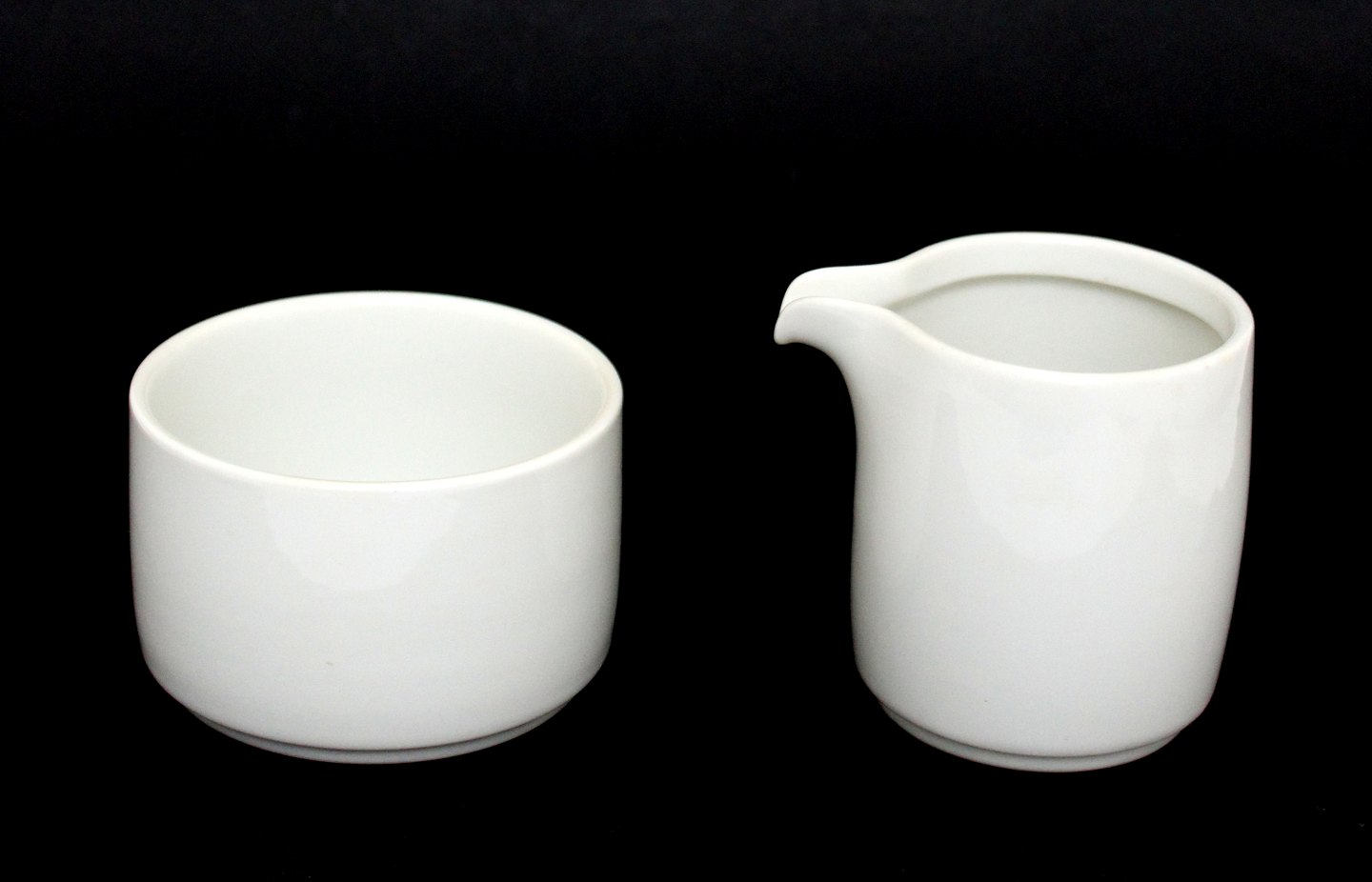 Text zugänglich auf Dänische: Royal Copenhagen, Hvidpot. Sukker og Fløde. Designet af Grethe Meyer.