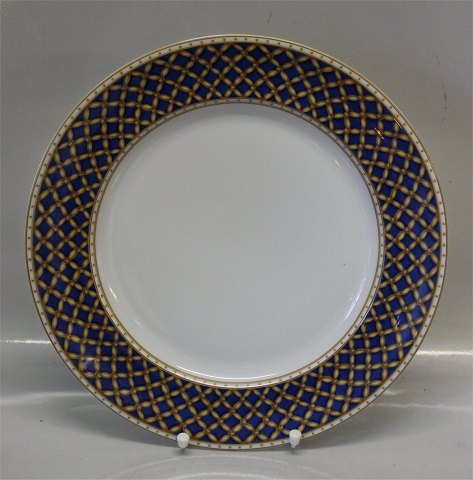 631 Flad tallerken 31 cm Kgl. Liselund Moderne stel i lys og mørk blå med guld. Design Diana Holstein 2001 for Royal Copenhagen