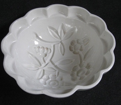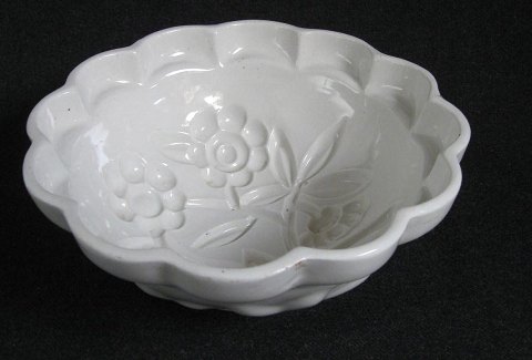 Buddinge form i fajance, 19. årh. Tyskland. Med dekoration i bunden i form af blomster. Hvid glaseret. Stemplet. Made in Germany. H.: 9 cm. Dia.: 22 cm. Perfekt stand!