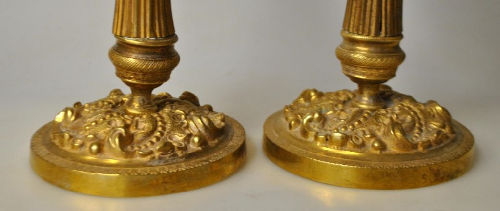 Paar Französisch Kerzenleuchter aus Messing / Bronze, vergoldet, 19. Jahrhundert
