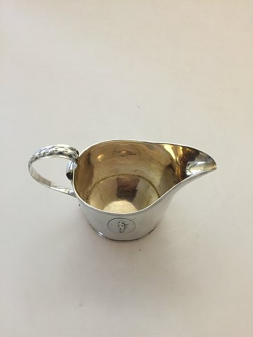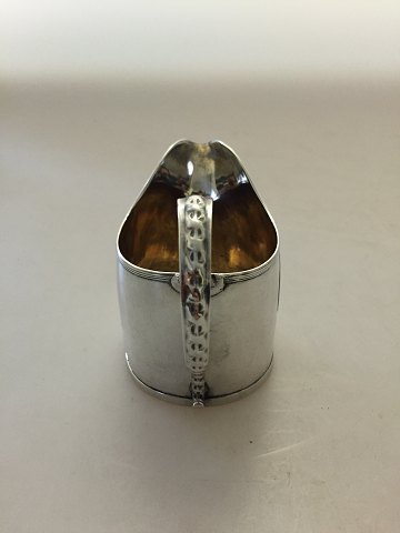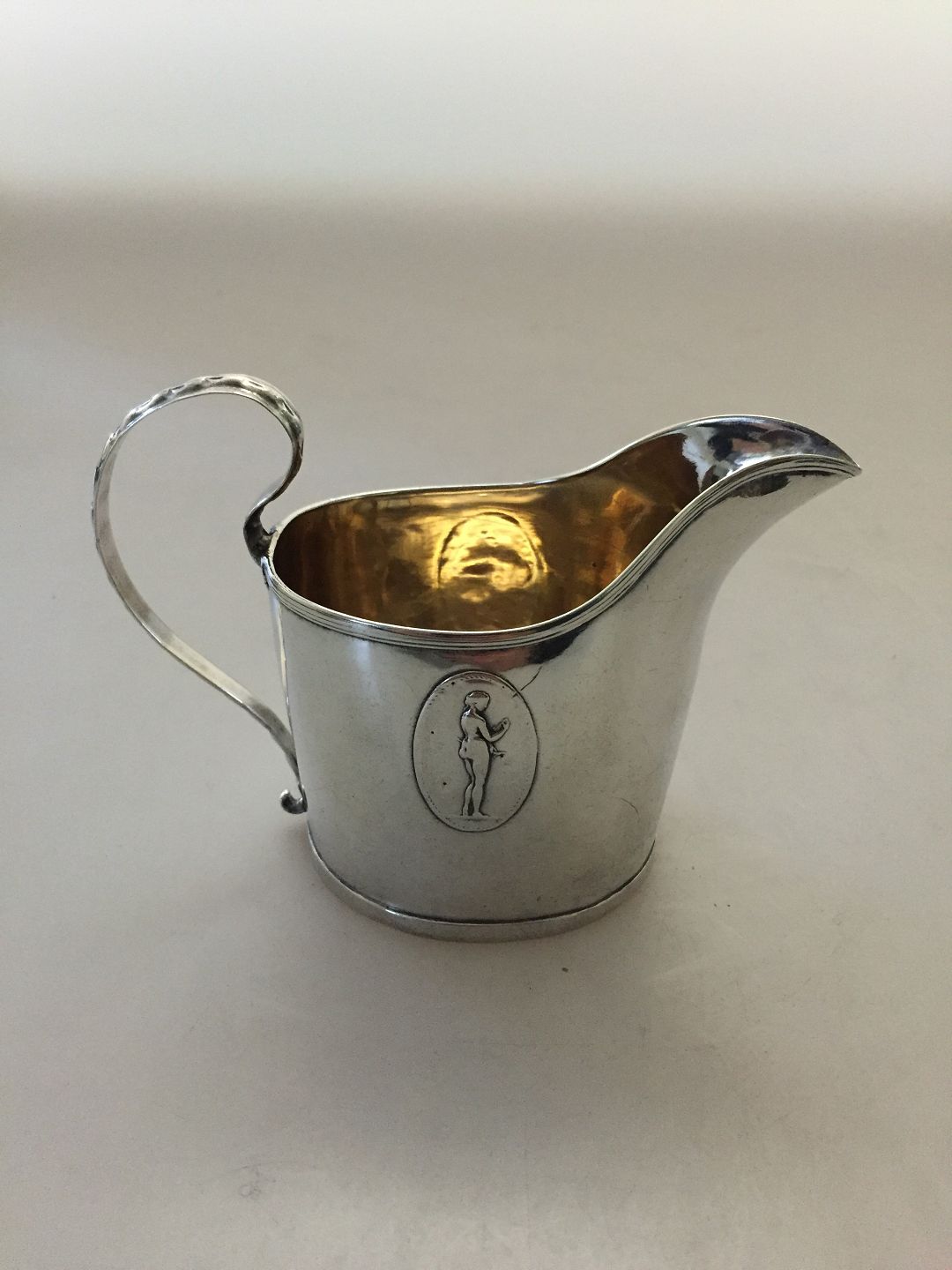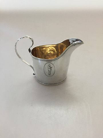 Svensk Sølv flødekande fra 1888 med nøgen mand og pige. Måler 8 cm i højden og 7 cm diameter.