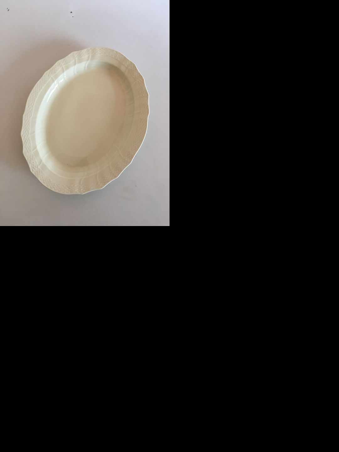 Royal Copenhagen Josephine Creme Svejfet Ovalt Fad. 37 cm. I fin stand