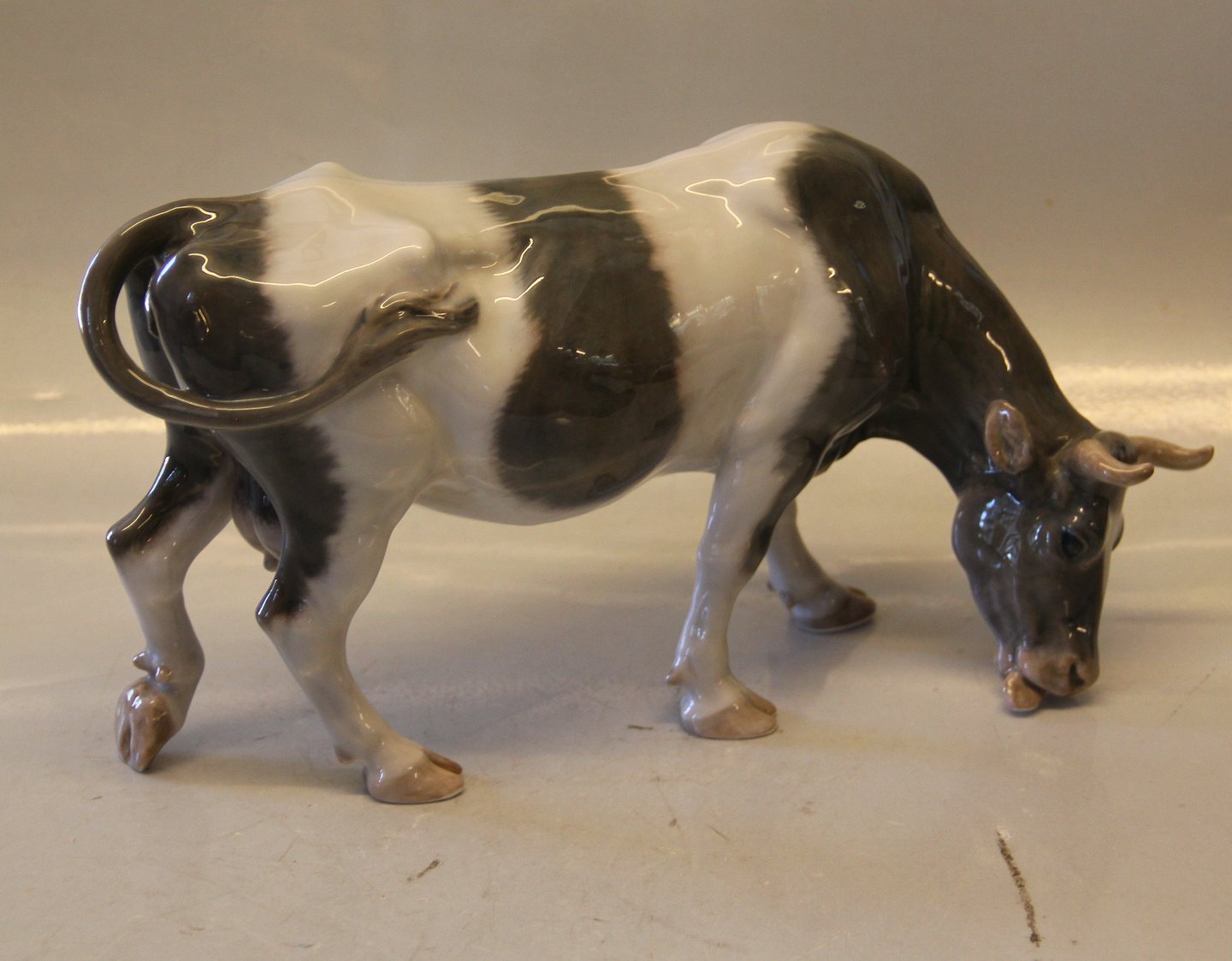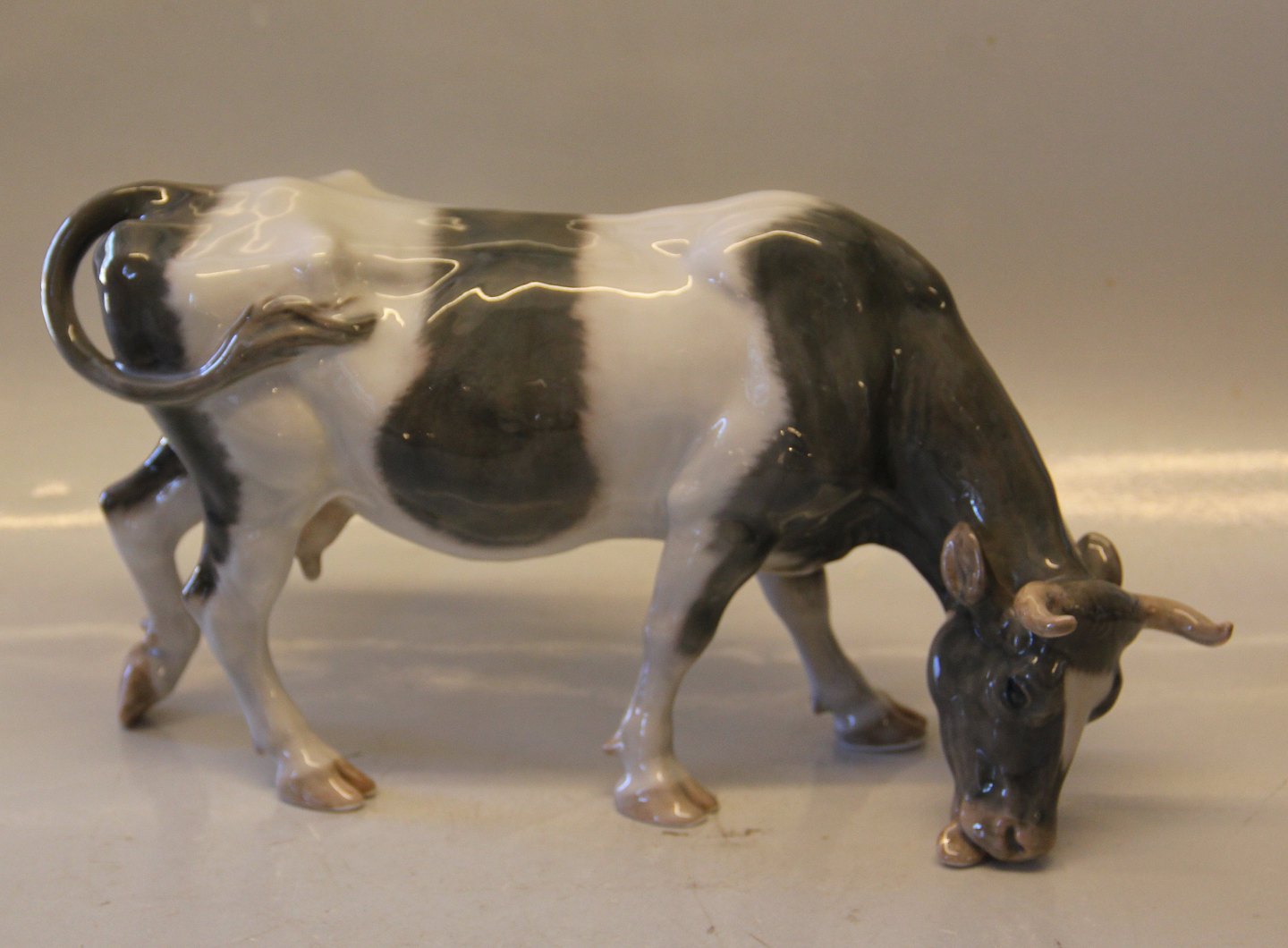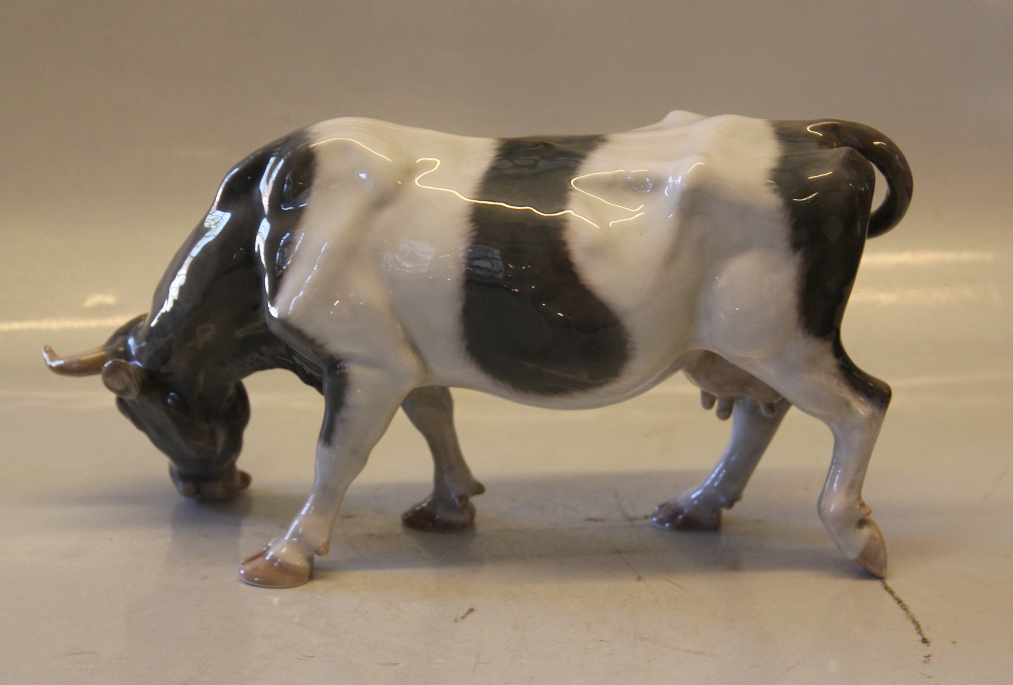 Kgl. 1310-1552 Kgl Græssende sortbroget ko Lauritz Jensen 1911 15 x 28 cm fra Royal Copenhagen I hel og fin stand