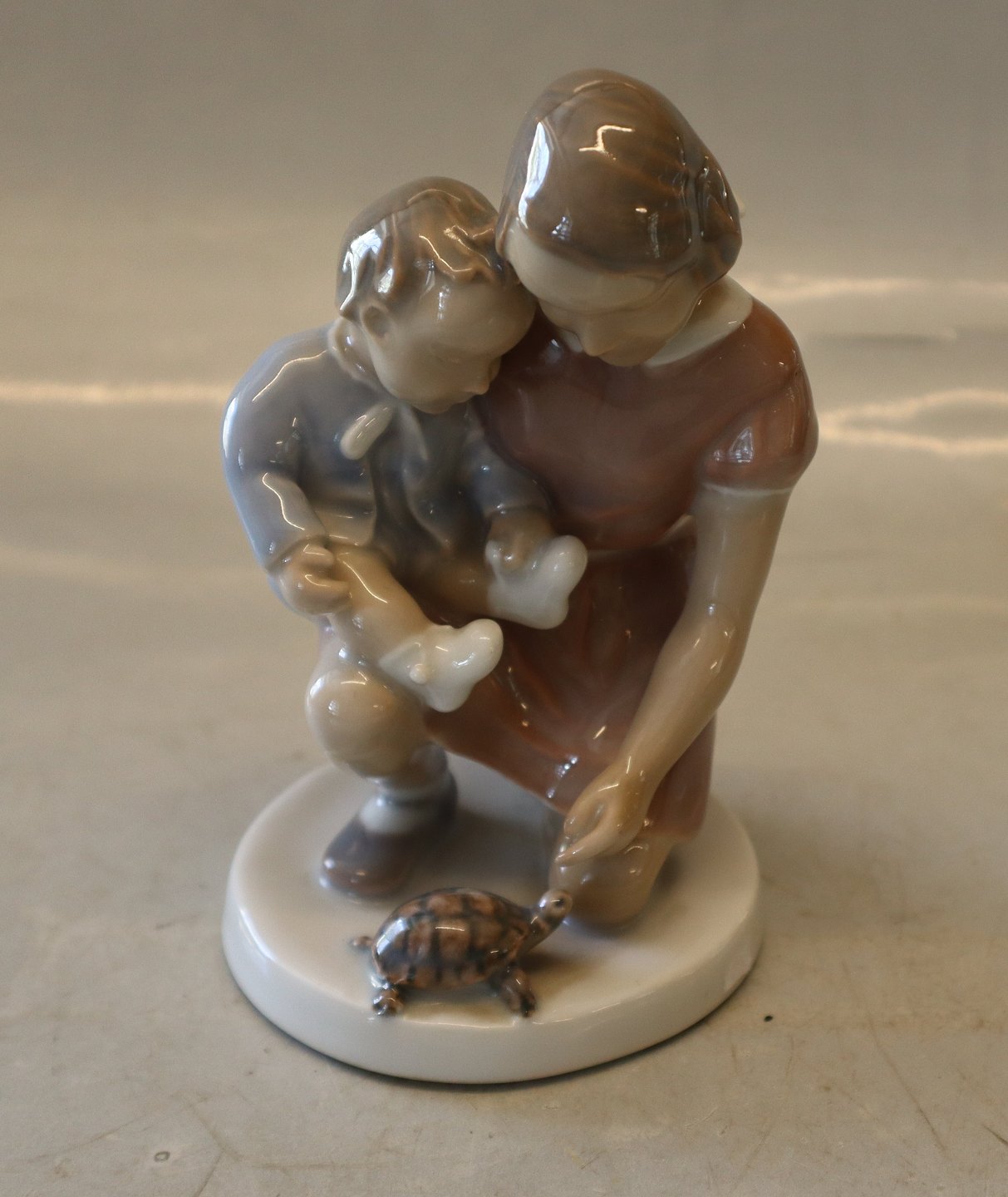 Bing & Grøndahl B&G 2277 Mor og barn ser på skildpadde 11 cm I fin og hel stand.