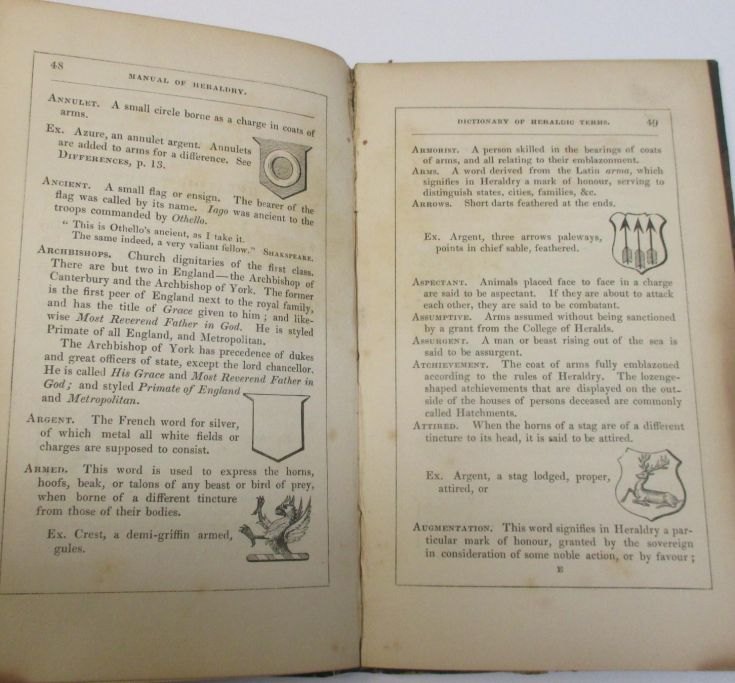 Das Handbuch der Heraldik. London, 1846. Gedrückt für Jeremiah How. Mit 400 Holzschnitte. 17 x 10,5 cm.