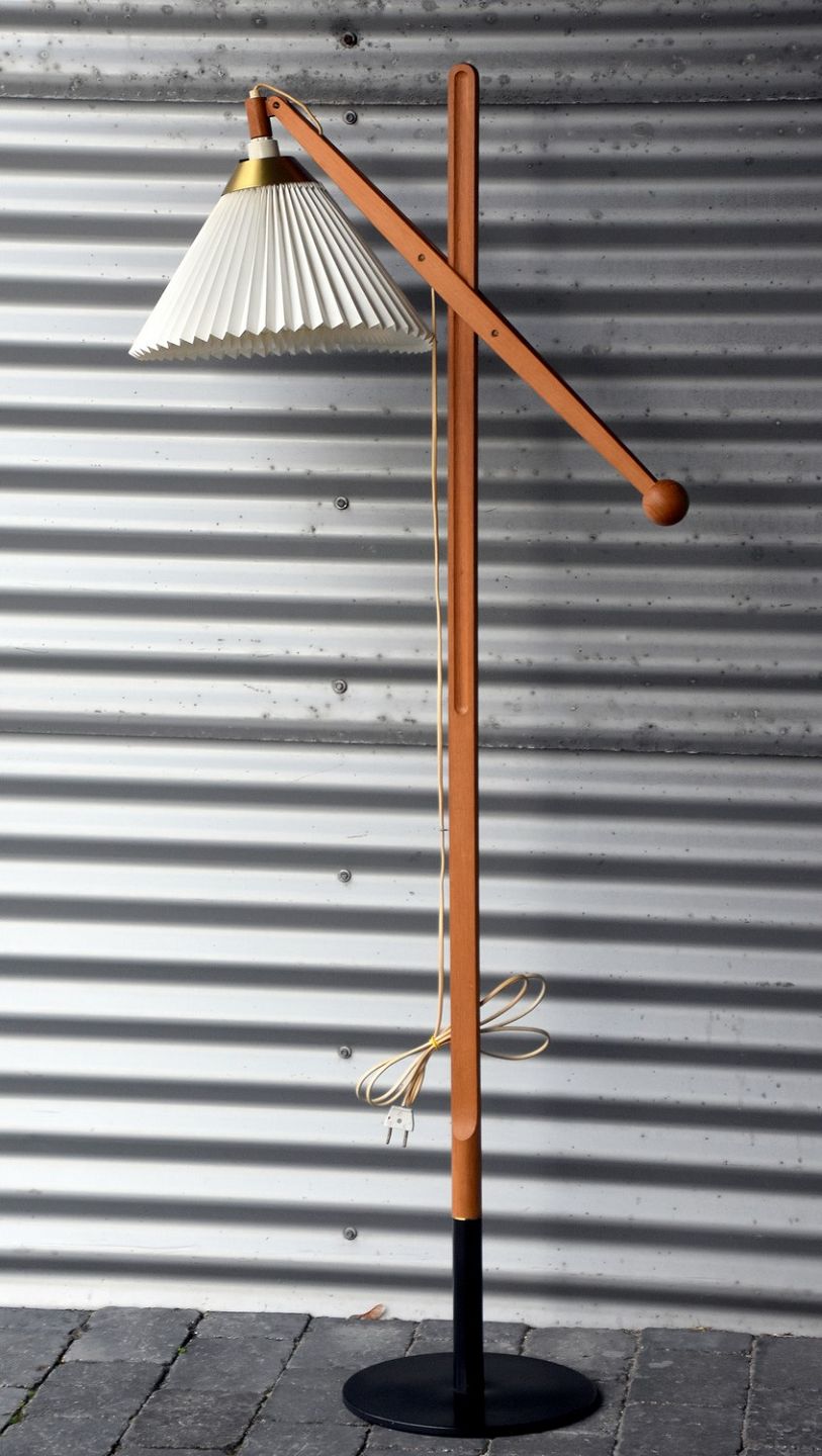 Gulvlampe nr.: 325 af Wilhelm Wohlert. Lyst eg. Justerbar højde og vinkel H.. 152 cm B.: 75 cm