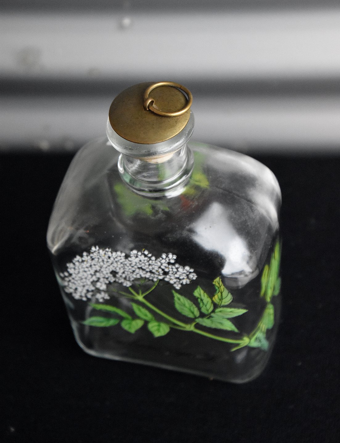 Snapsekaraffel med hyldeblomst/bær