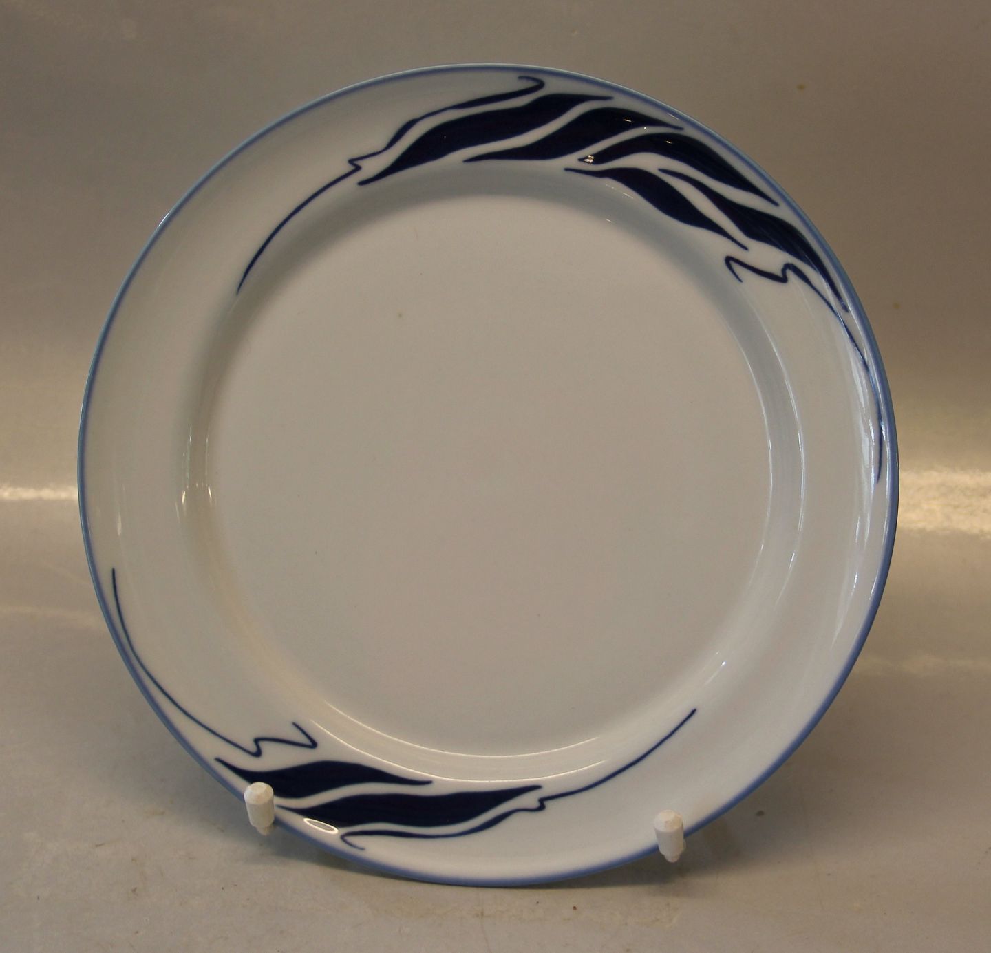 Middagstallerken 25.5 cm Scandinavia. Desiree Stellets runde former er dækket med en silkeblød glasur og håndmalet med er lys almueblå farve lagt under glasuren.