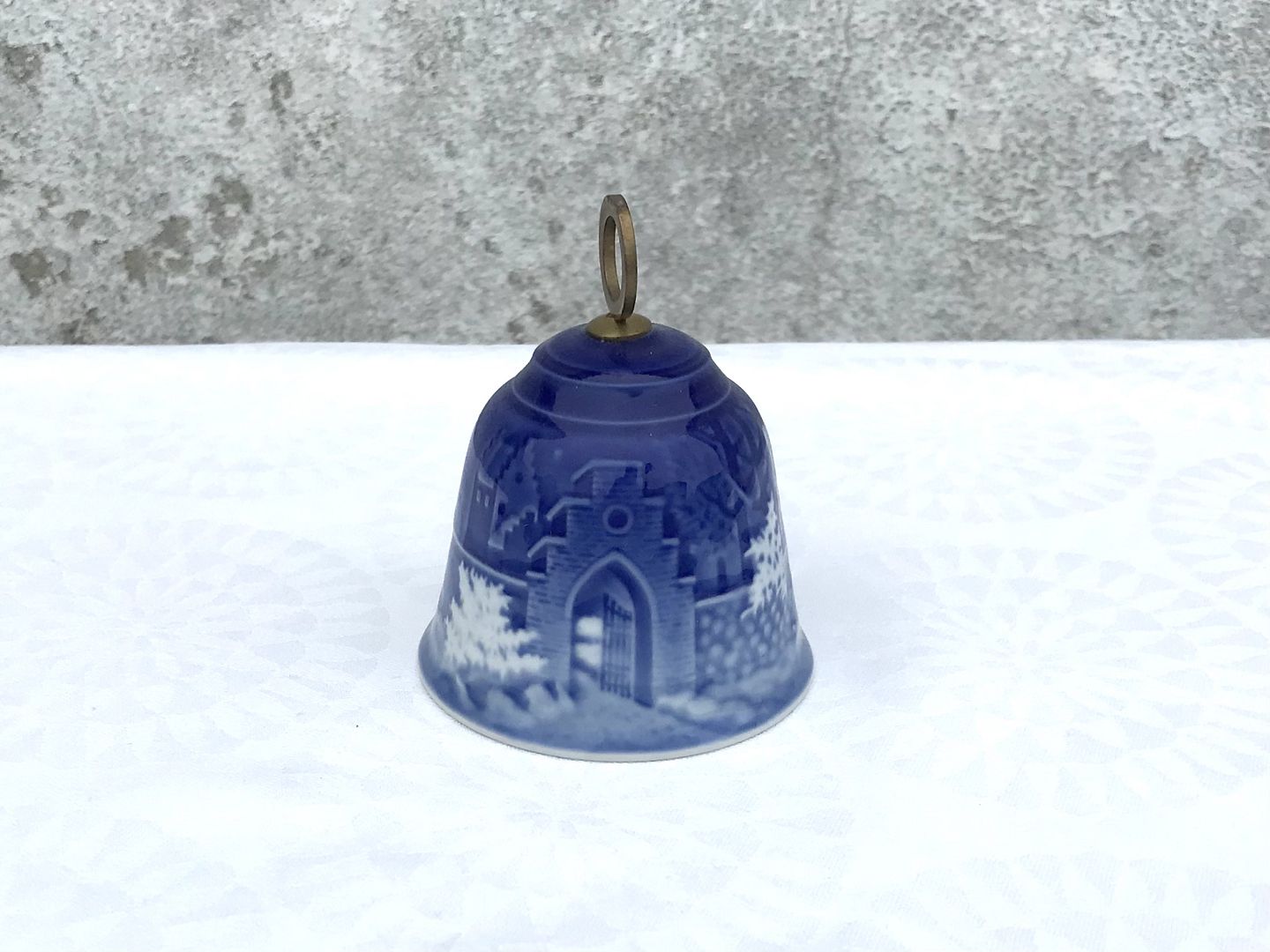 | Bing & Grondahl, Weihnachtsglocke, 1986, Søllerød Kirche, 6,5 cm Durchmesser, 8,5 cm hoch, Design Edvard Jensen * Perfekter Zustand *