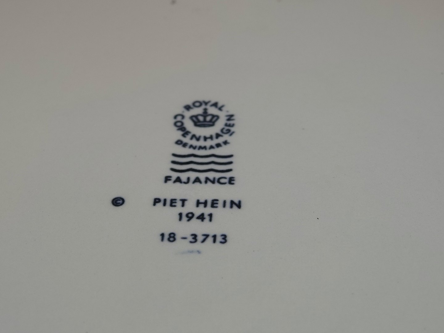 Royal Copenhagen Piet Hein platte med gruk på engelsk.