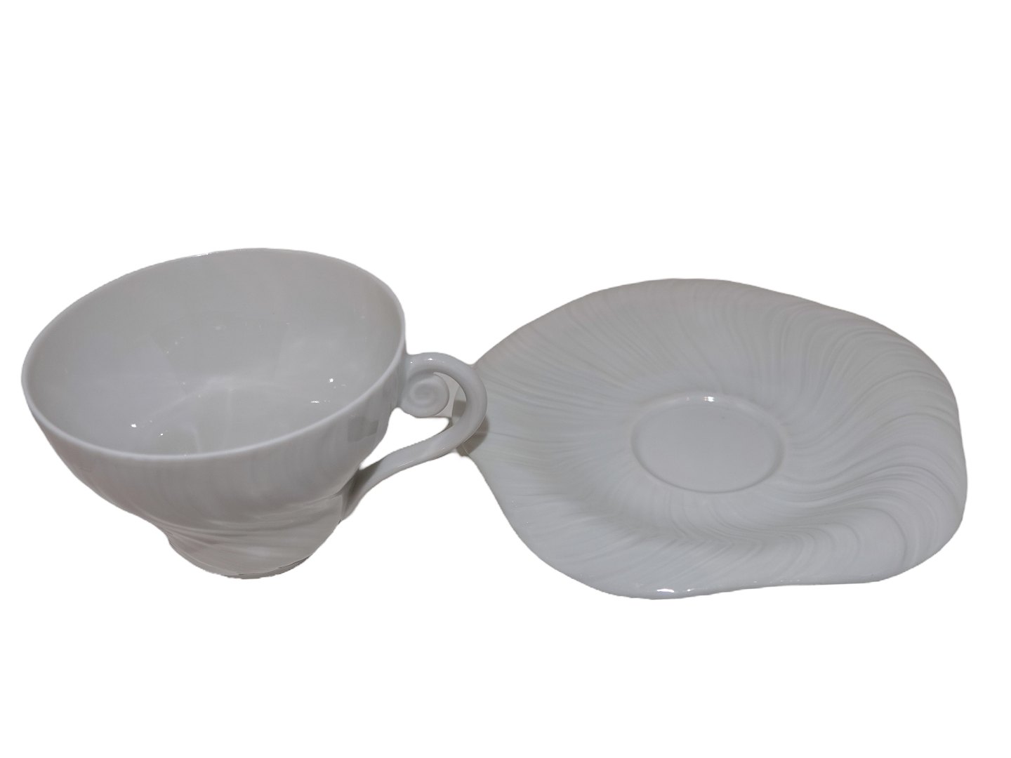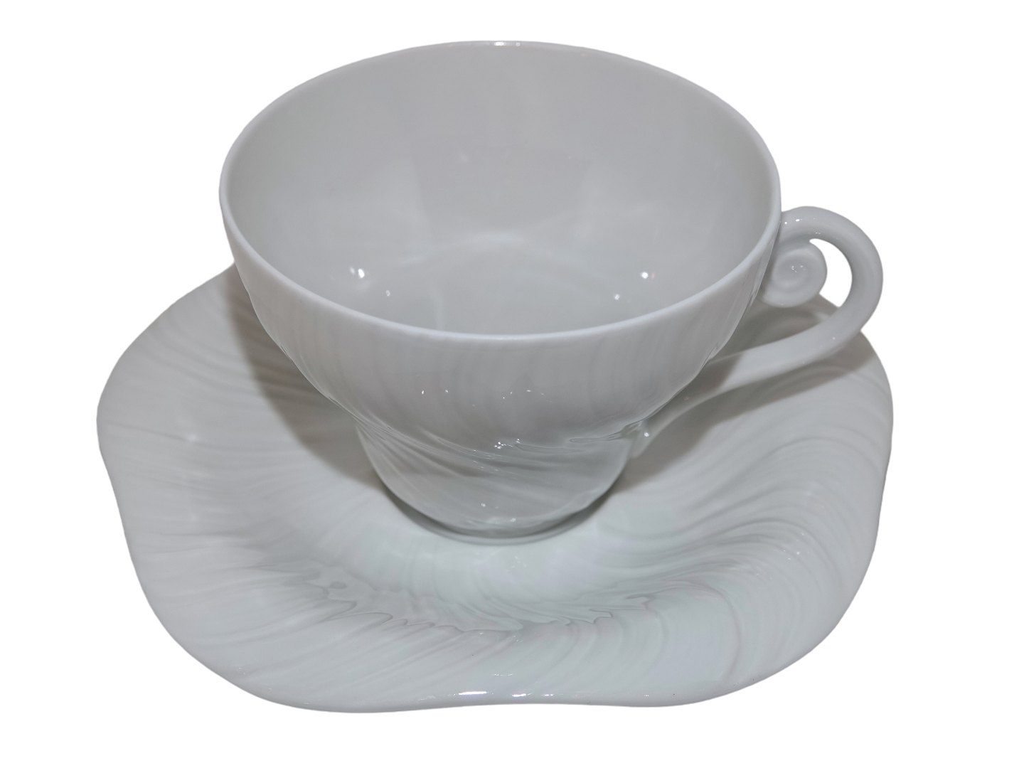 Royal Copenhagen Hvid Konkylie, stor kaffekop med tilhørende underkop.