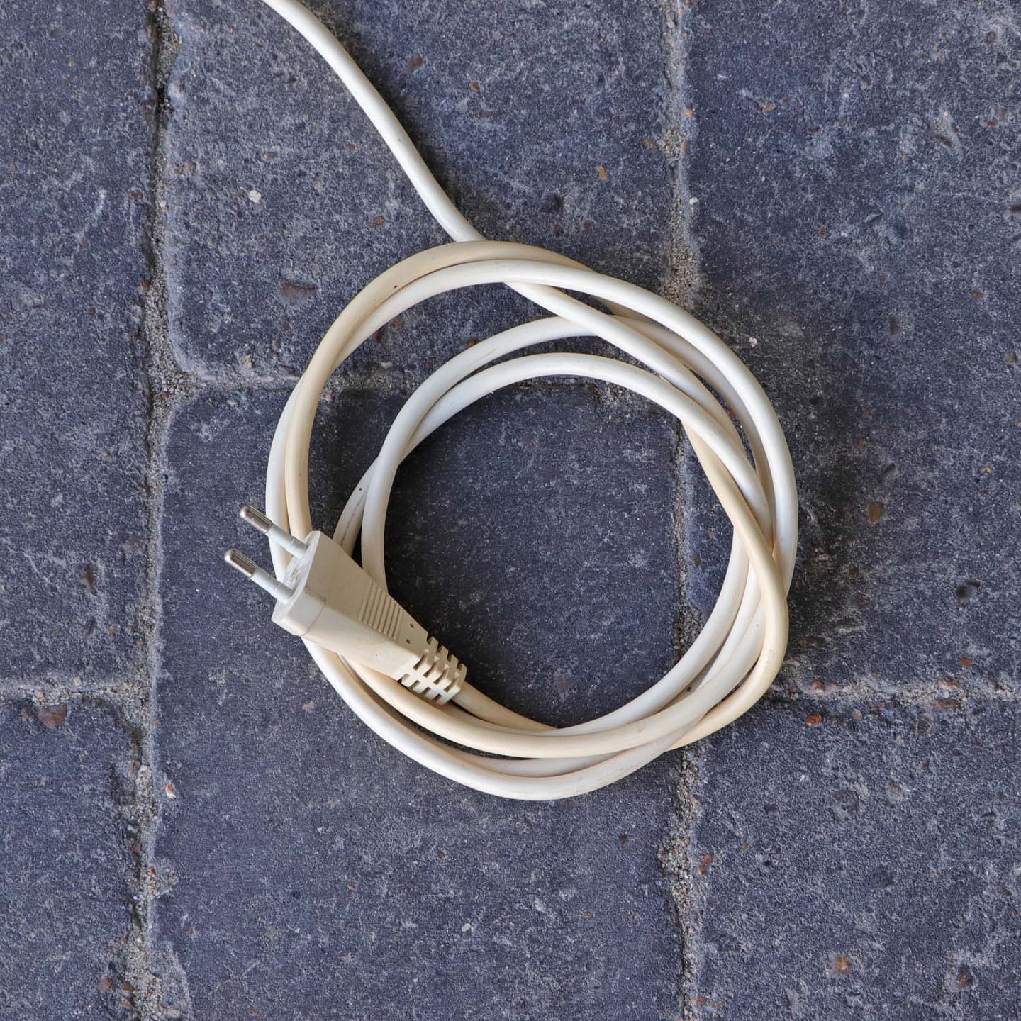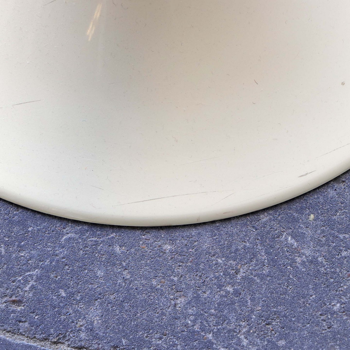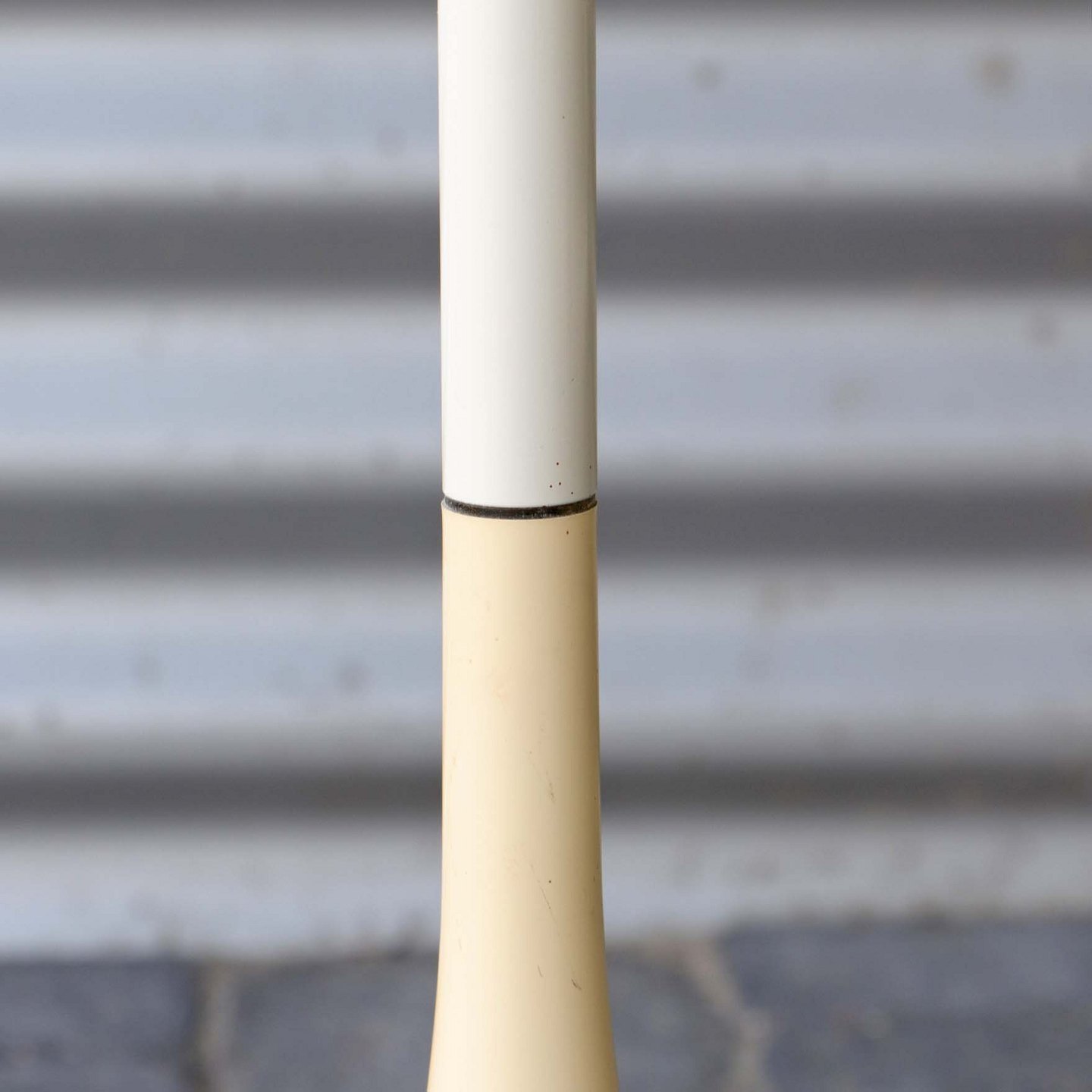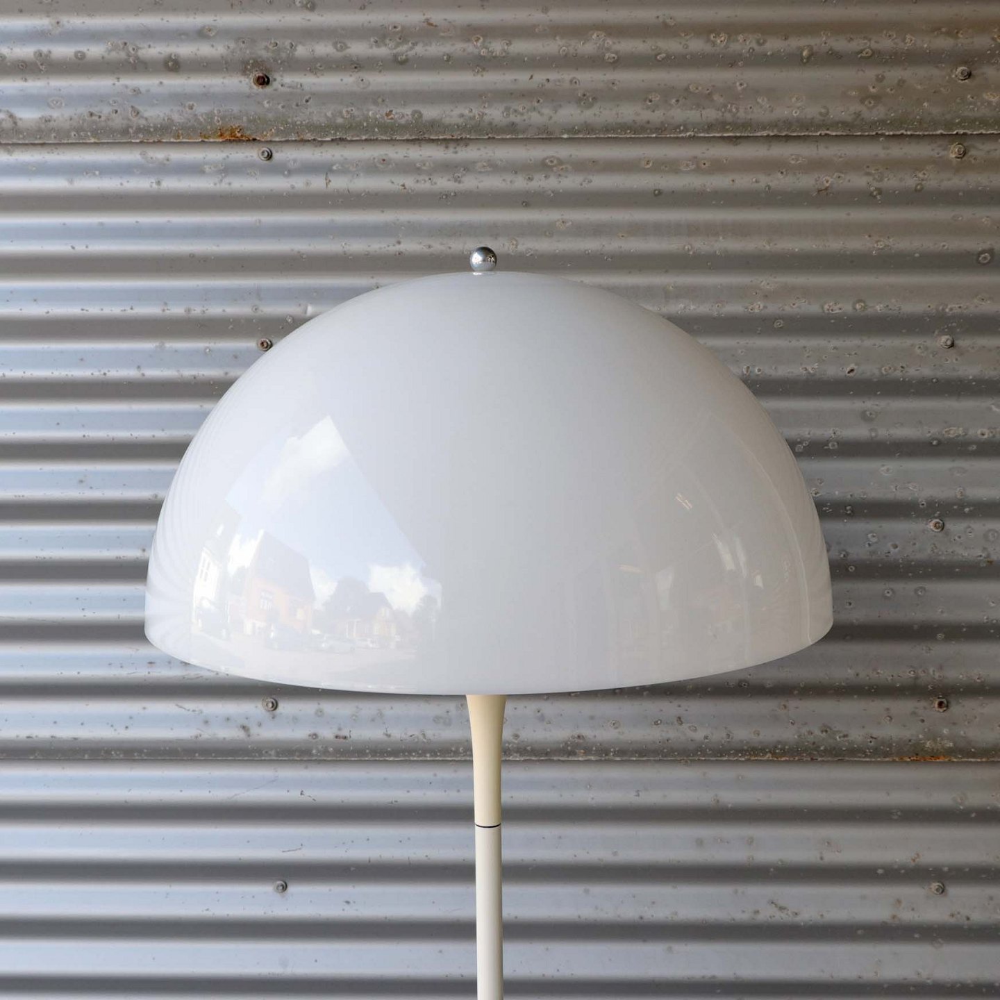 Panthella standerlampe i hvidlakeret metal og hvid plastskærm.