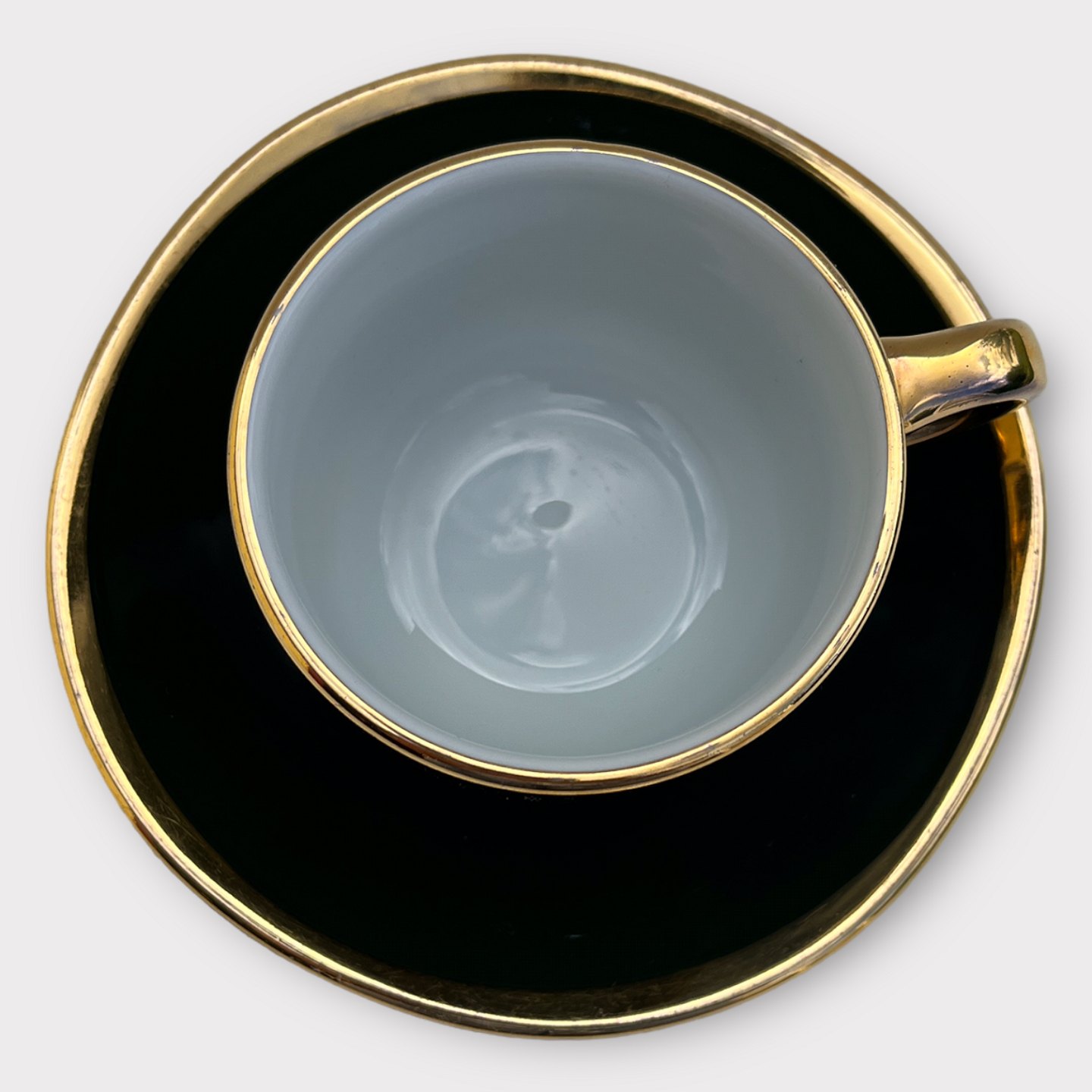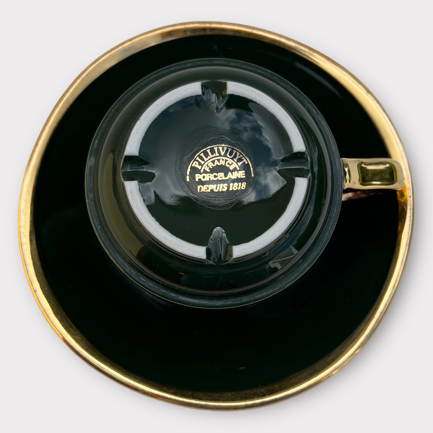 | Pillivuyt, Grüner Bistro mit Goldrand, Teetasse, 8,5 cm Durchmesser, 7 cm hoch *Guter Zustand*