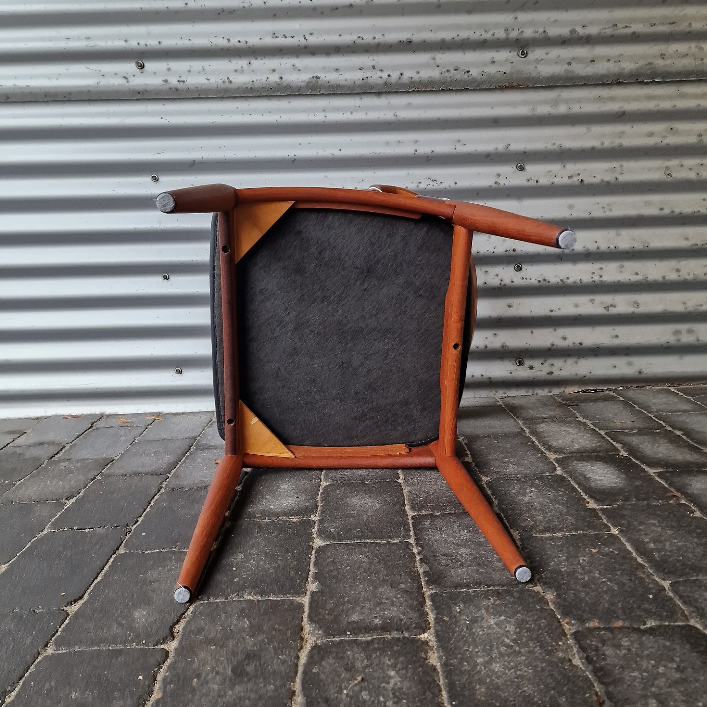 4 stk nypolstrede spisebordsstole af teaktræ og sæde af læder.