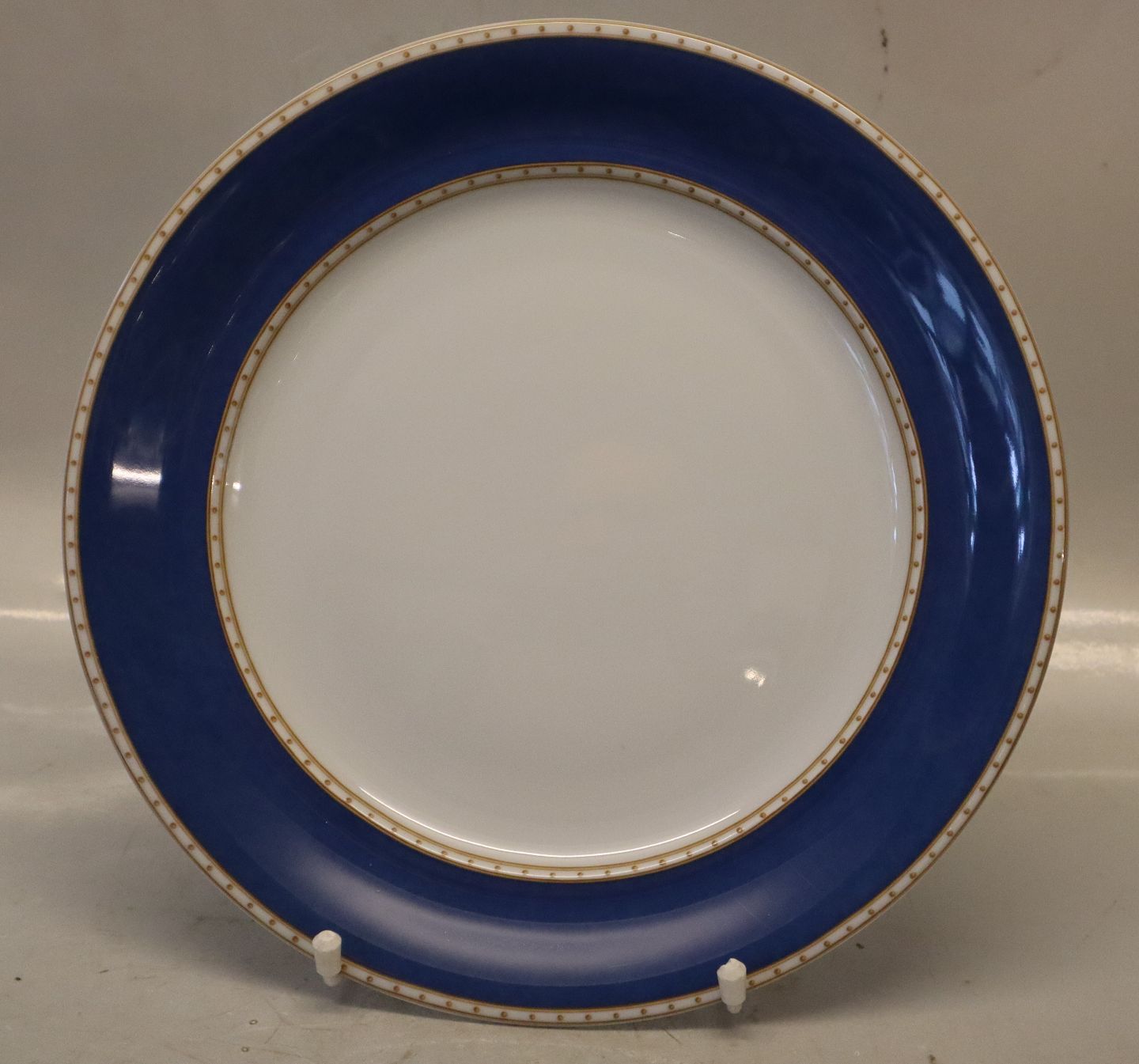 627 Flad dækketallerken 27 cm Kgl. Liselund Moderne stel i lyse og mørkeblå med og uden flet. Design Diana Holstein 2001 Royal Copenhagen