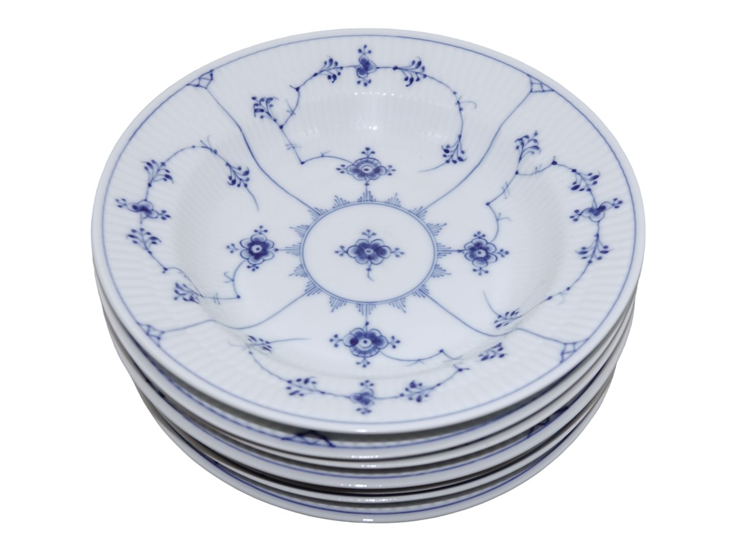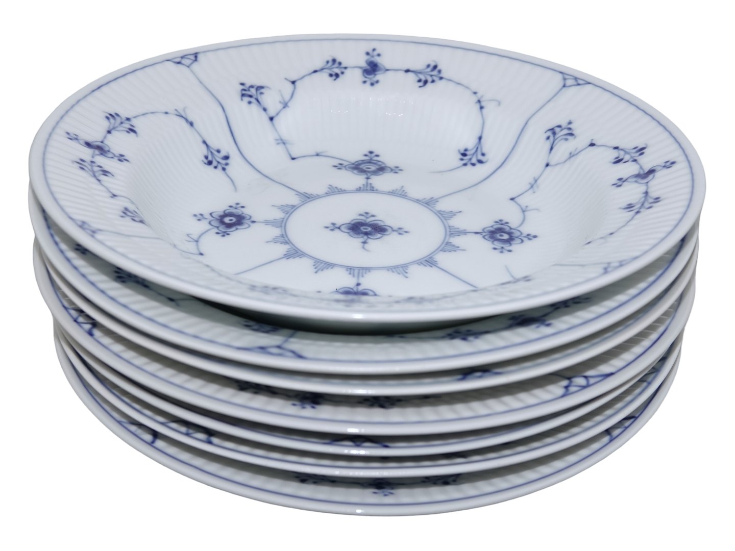 Text zugänglich auf Dänische: Royal Copenhagen Musselmalet Riflet, stor dyb suppetallerken.