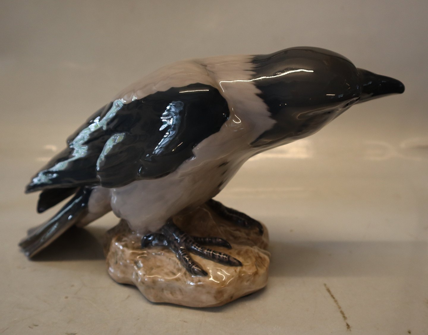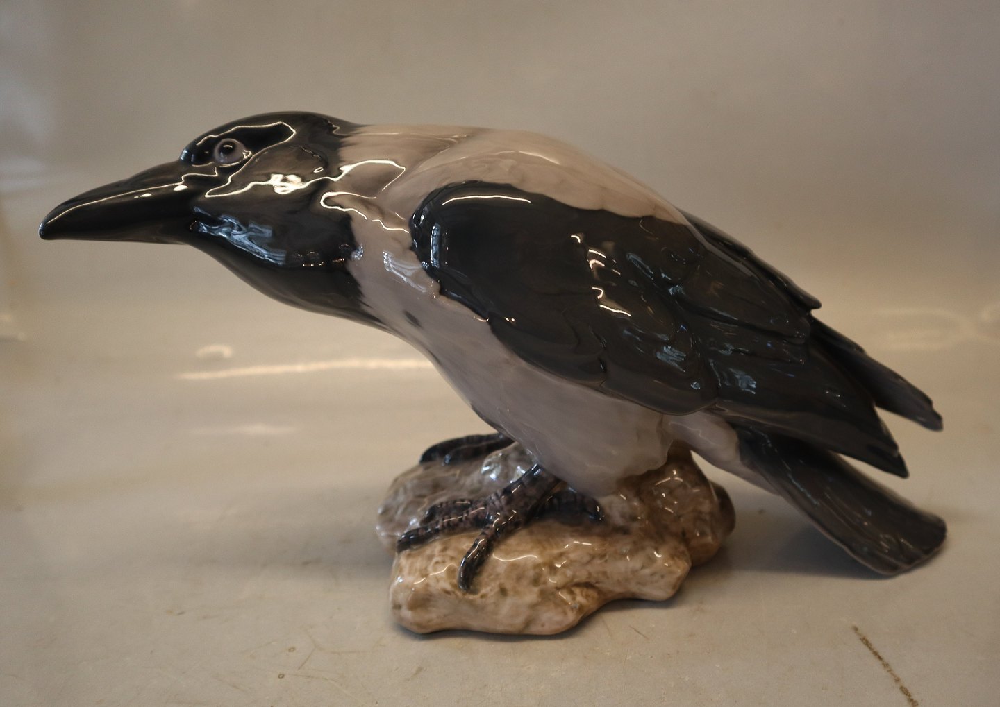 Bing and Grondahl Bird B&G 1714 Large Crow Design Dahl Jensen 17 x 33 cm Marked with the three Royal Towers of Copenhagen. In mint and nice condition