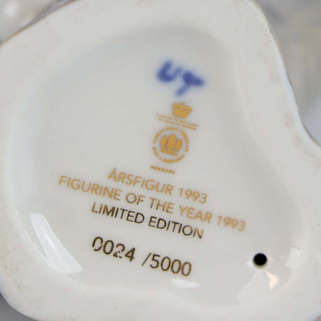 Årsfigur i porcelæn fra 1993, håndmalet med motiv koalabjørn på træstub nr 24/5000