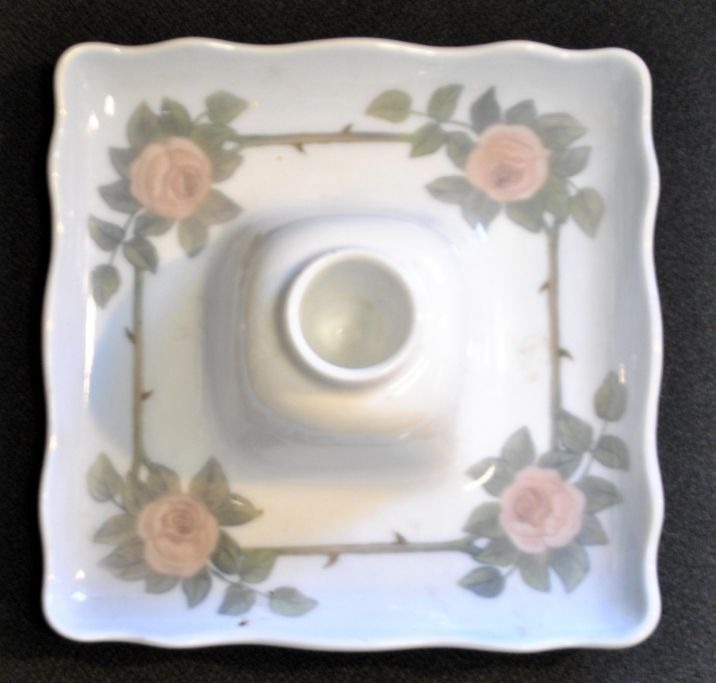 Royal Copenhagen Tintenfass aus Porzellan, 1127/258, 20. Jahrhundert Kopenhagen, Dänemark. Weißes Porzellan mit hellblauen Übermalungen und Rosen. Welliger Rand. H.: 4,6 cm. 15 x 15 cm.
