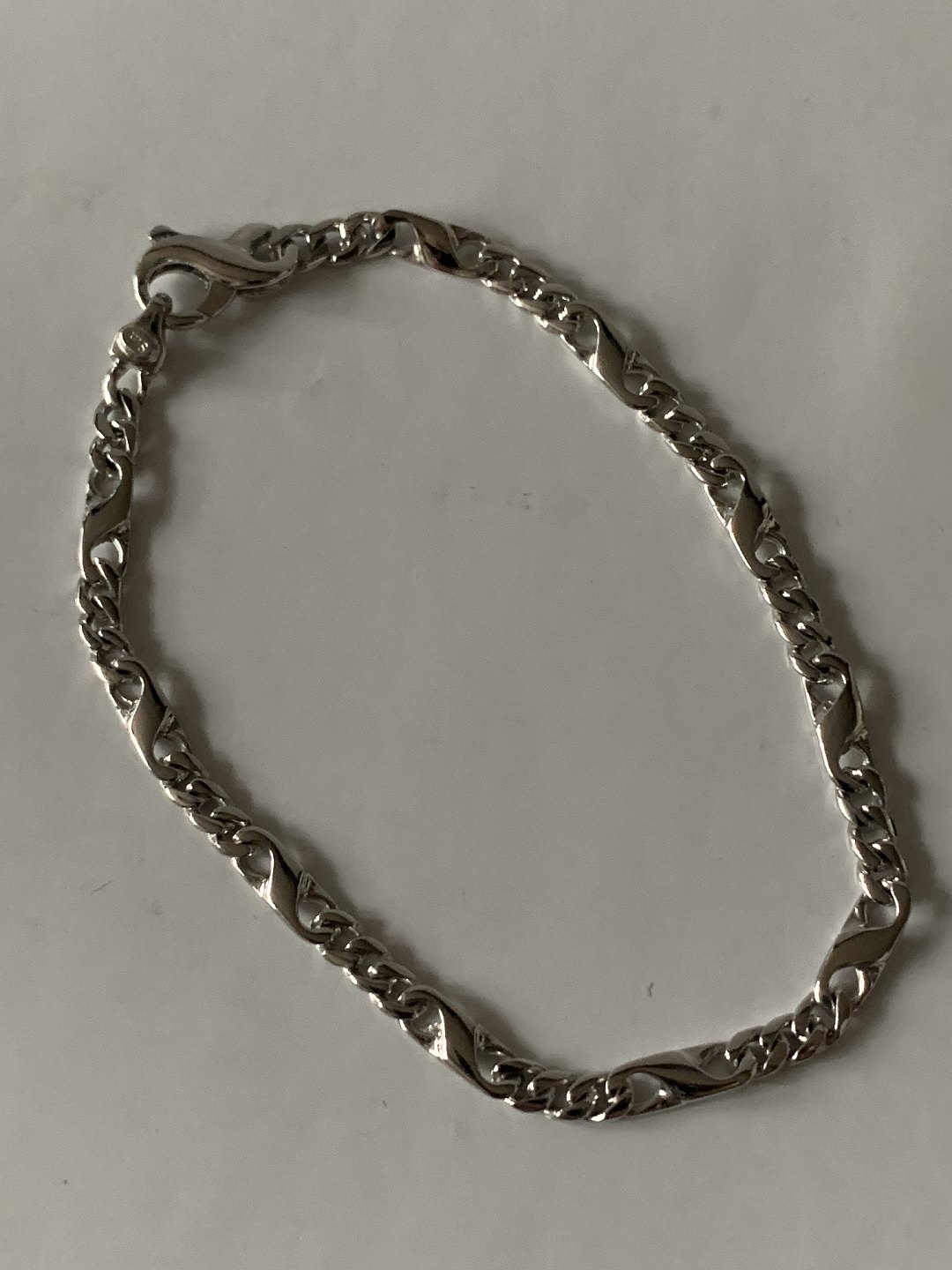 Guldarmbånd i 14 karat hvidguld, stemplet 585 HIS og med karabinlås.