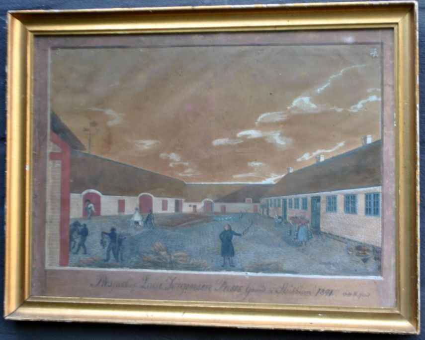 Dänischer Künstler (19. Jahrhundert): Prospekt des Bauernhofs von Laue Jørgensen Frise in Stubbum. 1841.