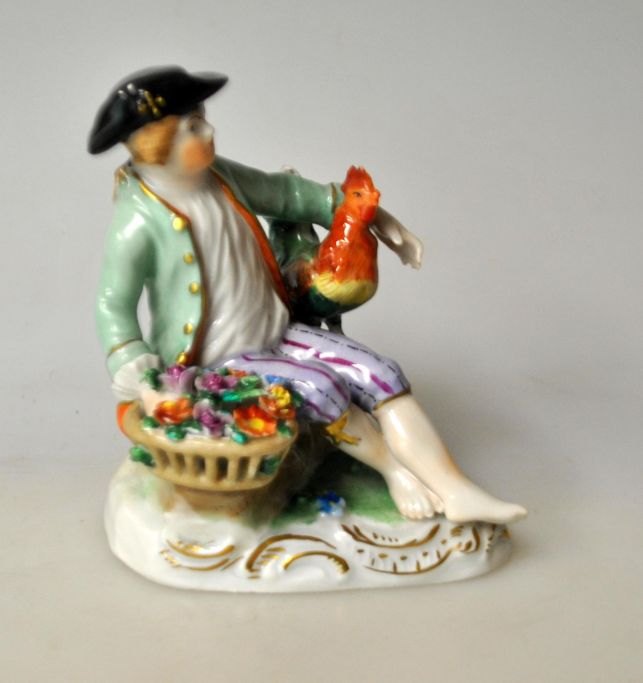 Porzellanfigur Bauernjunge mit Hühnern, Potschappel, Dresden, Deutschland.