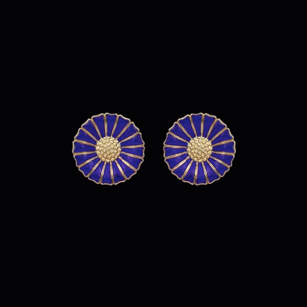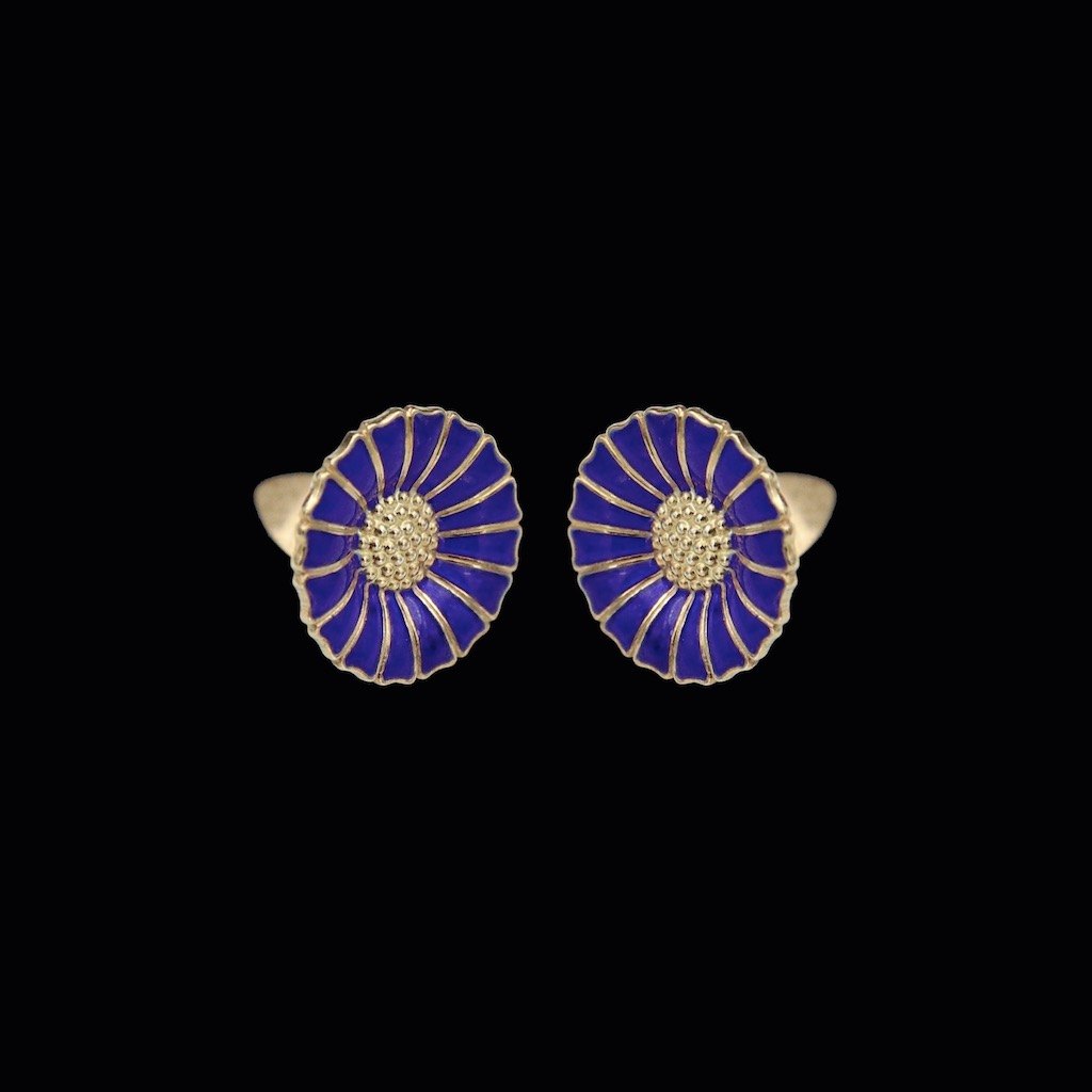 Text zugänglich auf Dänische: A. Michelsen Marguerit / Daisy Øreklips i forgyldt sterling sølv med blå emalje - 18mm.