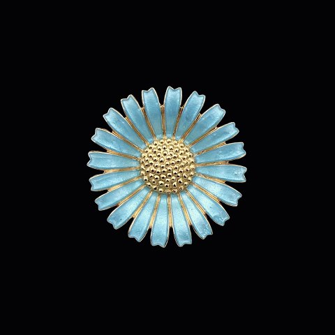 Text zugänglich auf Dänische: A. Michelsen Marguerit / Daisy Broche i forgyldt sterling sølv med turkis emalje - 33mm.