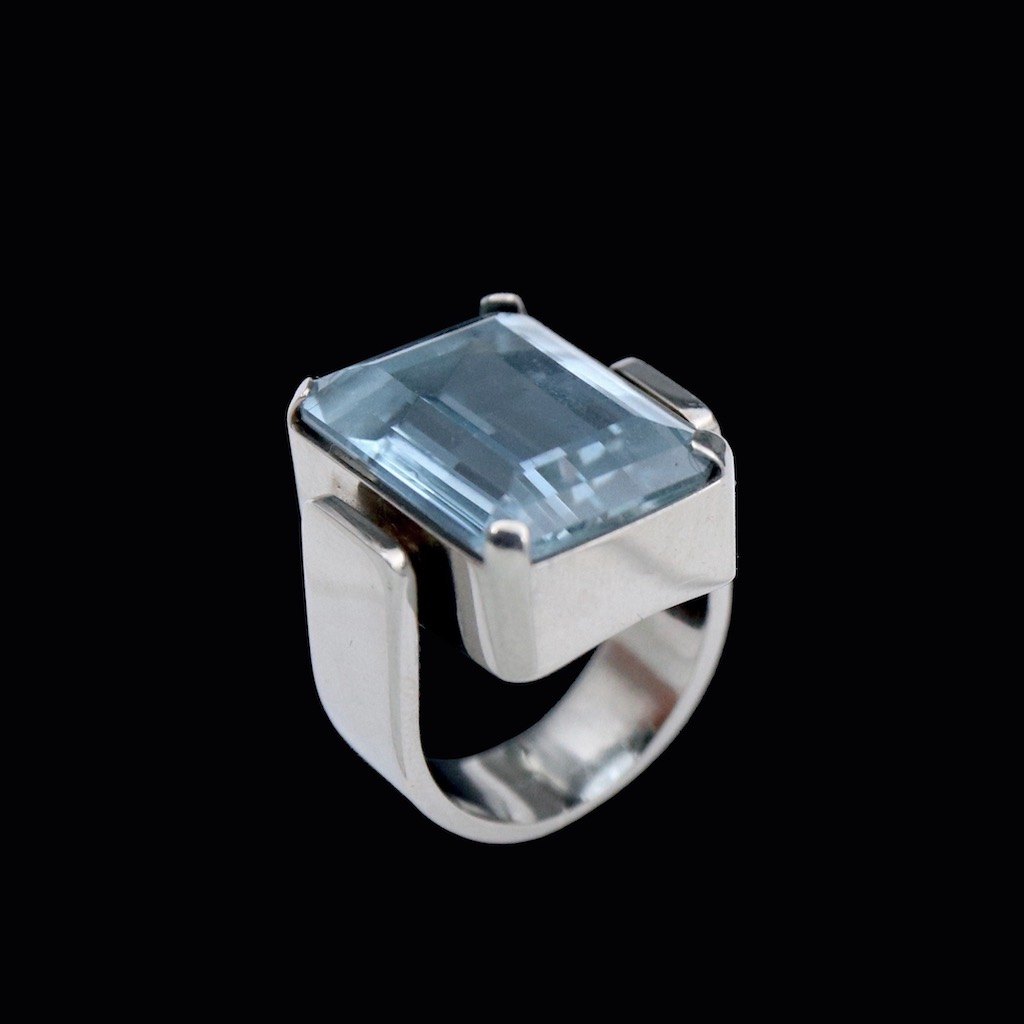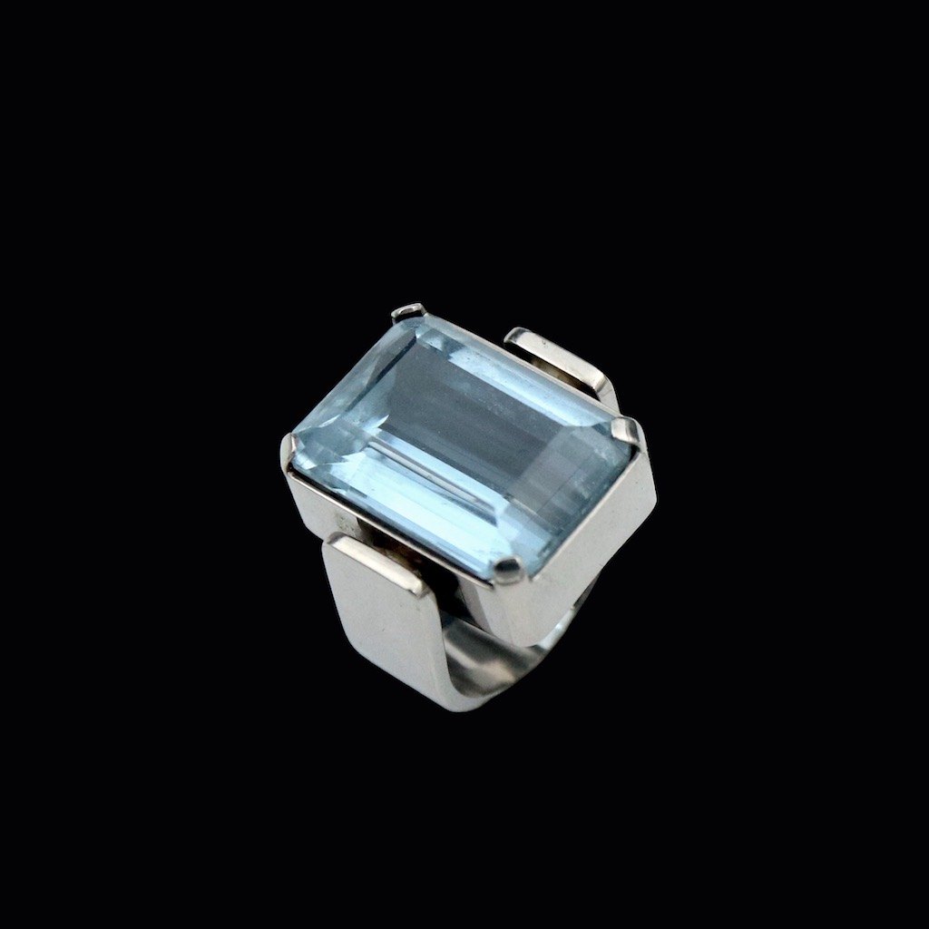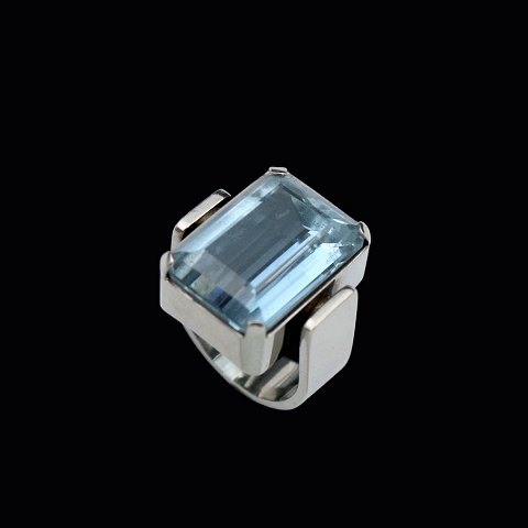 Text zugänglich auf Dänische: Boy Johansen. Ring i 18k hvidguld med aquamarine.