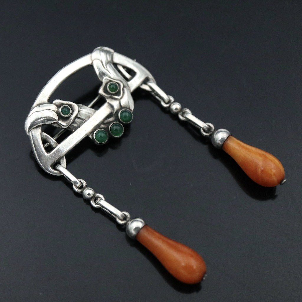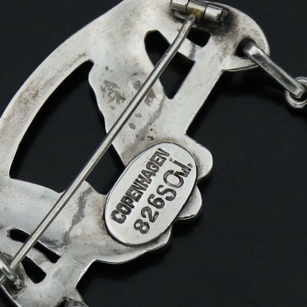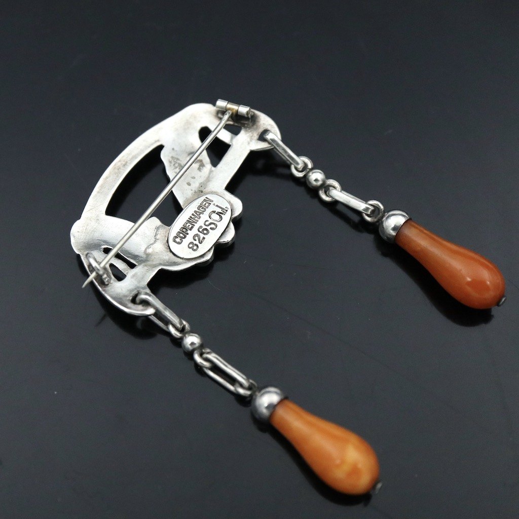 Text zugänglich auf Dänische: Georg Jensen. Broche i 826s sølv med agat og rav. 1907-14 stempler.