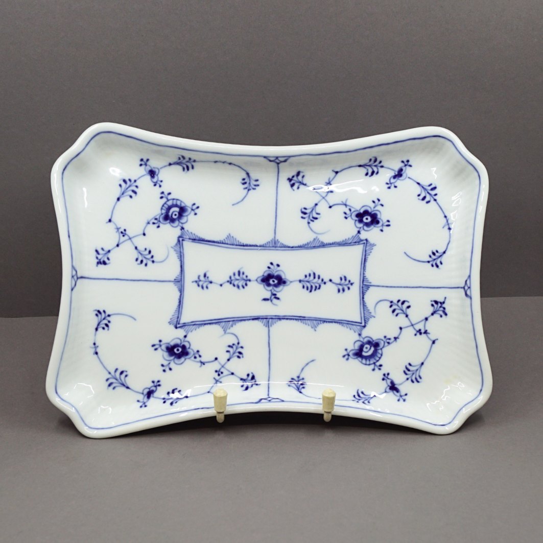 Text zugänglich auf Dänische: Royal Copenhagen, musselmalet riflet porcelæn; Aflangt fad, Nr. 269