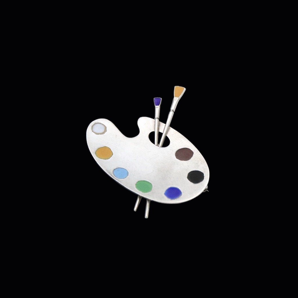 Text zugänglich auf Dänische: A. Michelsen. 'Palette' Broche i sterling sølv med emalje.