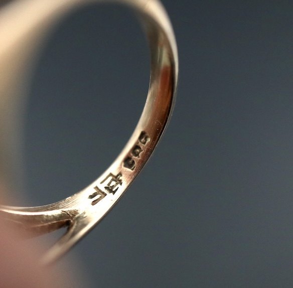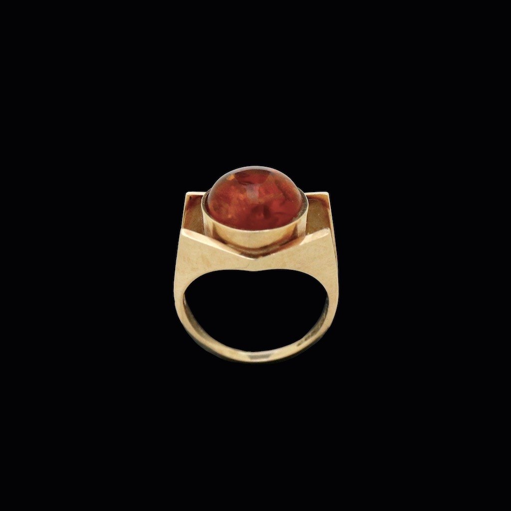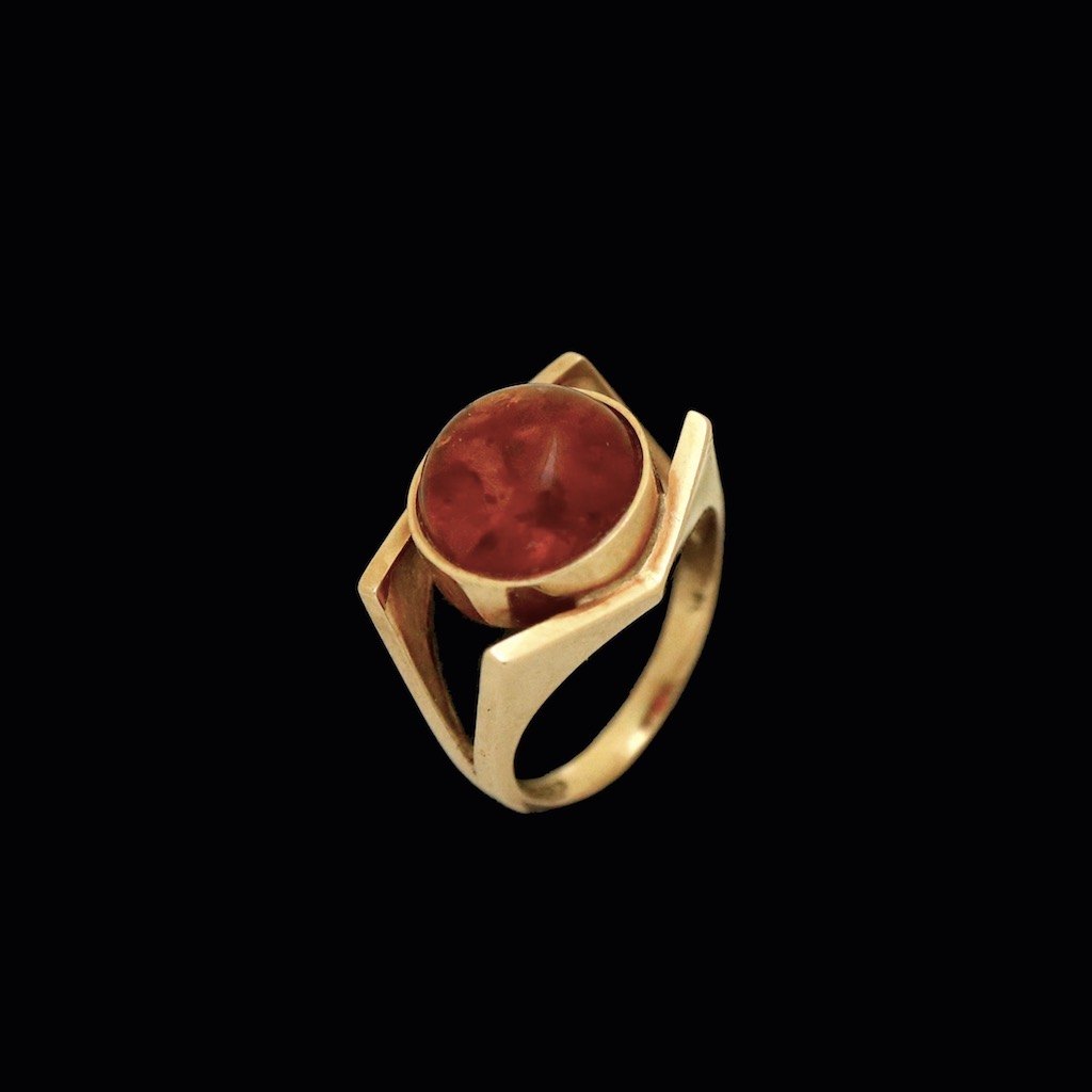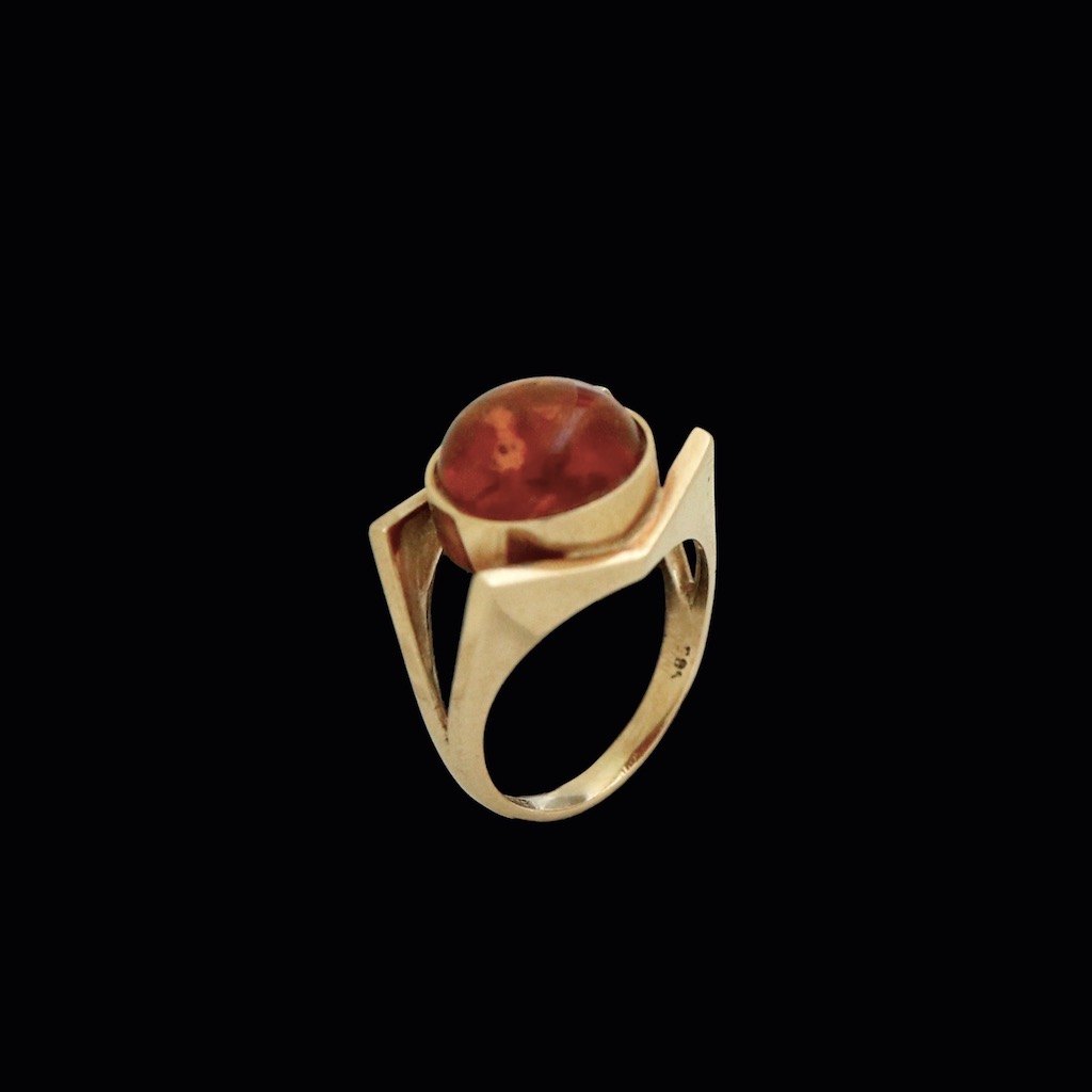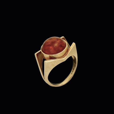 Text zugänglich auf Dänische: Einer Fehrn. Ring i 14k guld med rav.