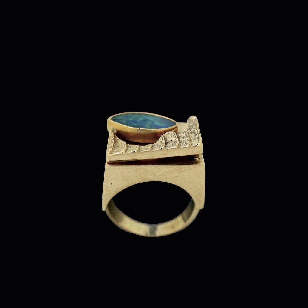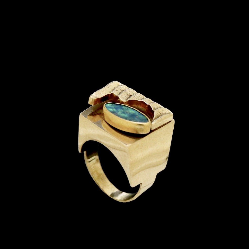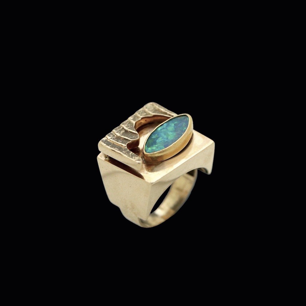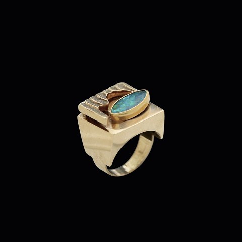 Text zugänglich auf Dänische: Frank Ahm. Ring i 14k guld med Opal.