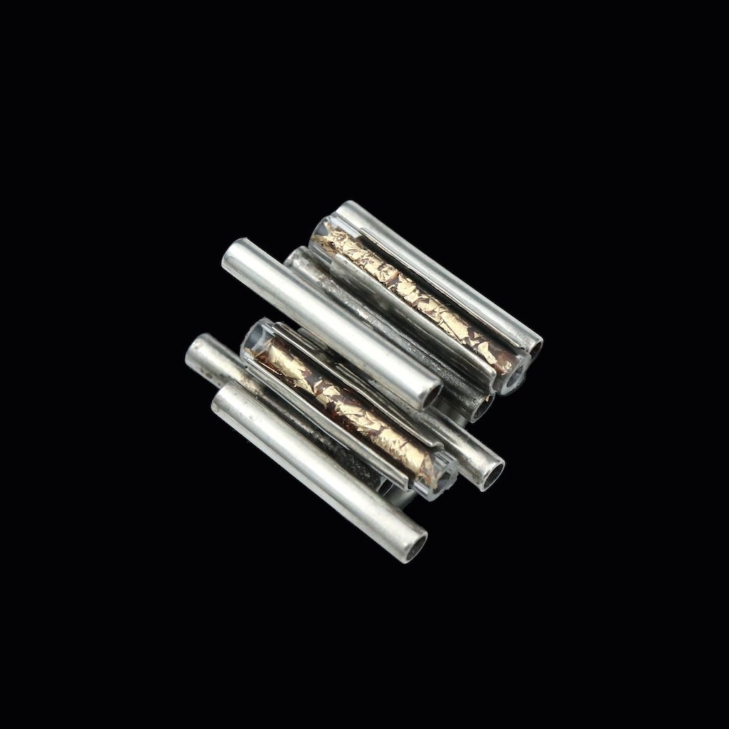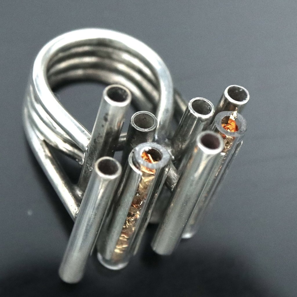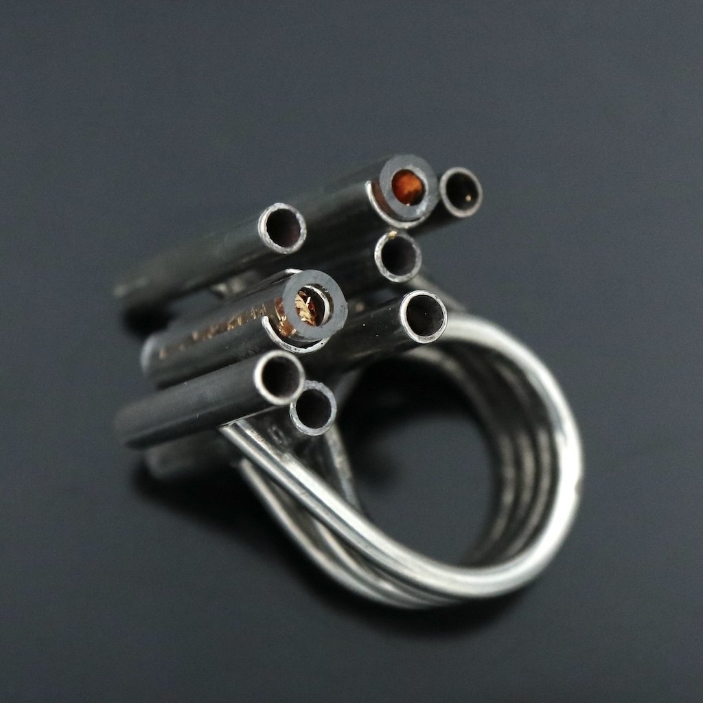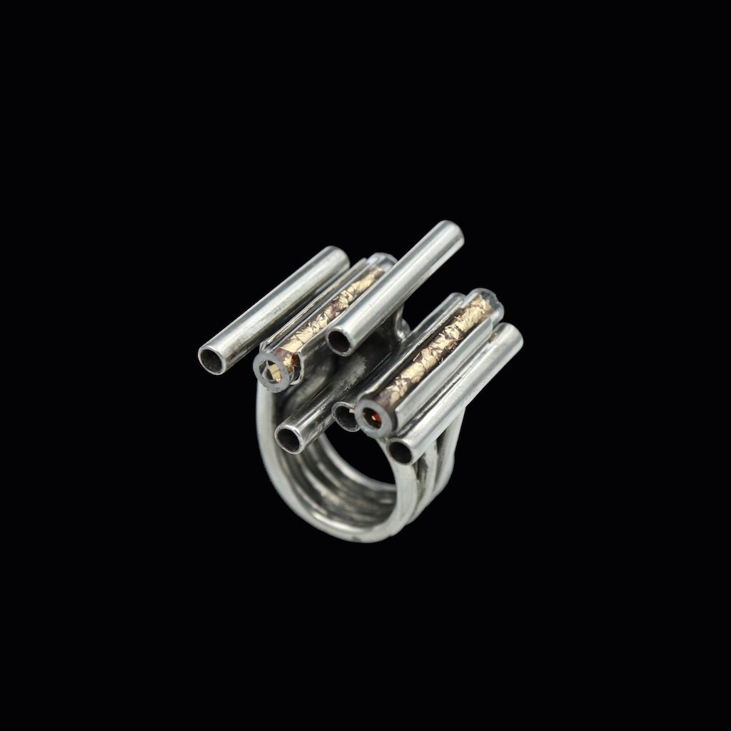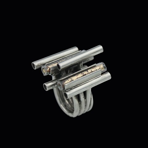 Text zugänglich auf Dänische: Flemming Knudsen. Ring i sterling sølv med plexi-glas og bladguld.
