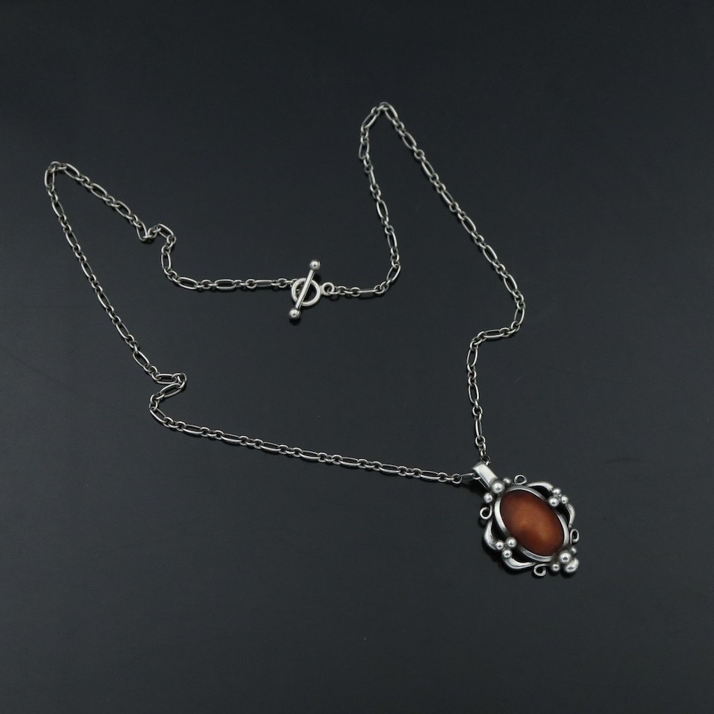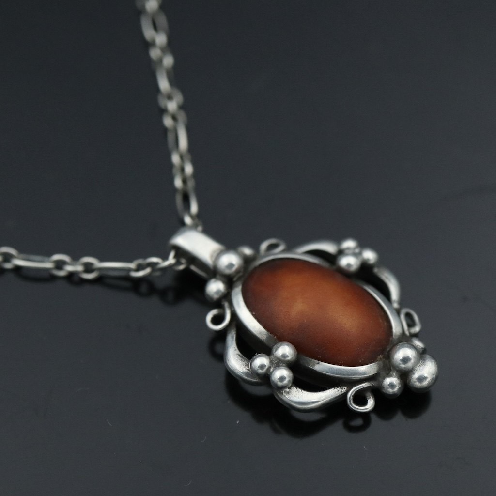 Text zugänglich auf Dänische: Georg Jensen. vedhæng i sterlingsølv med rav.