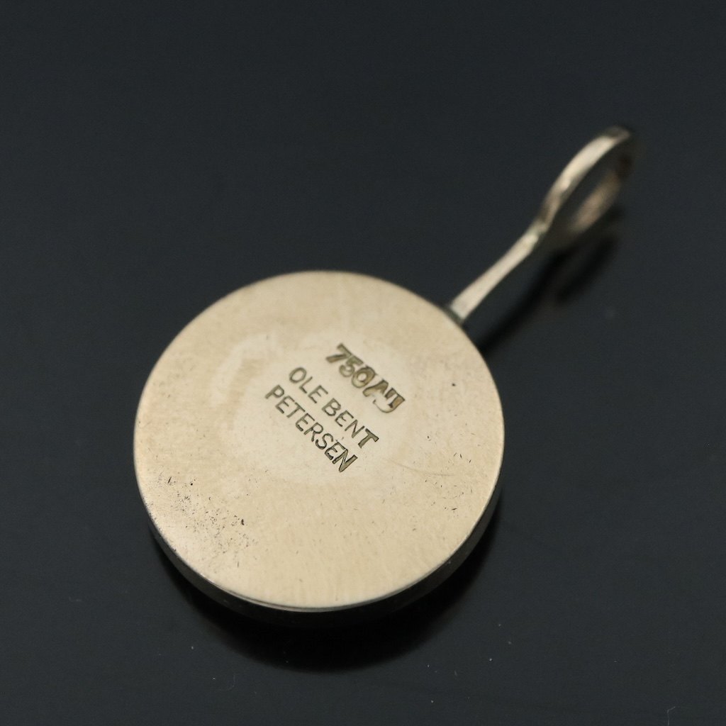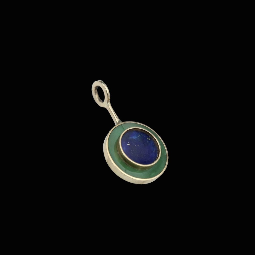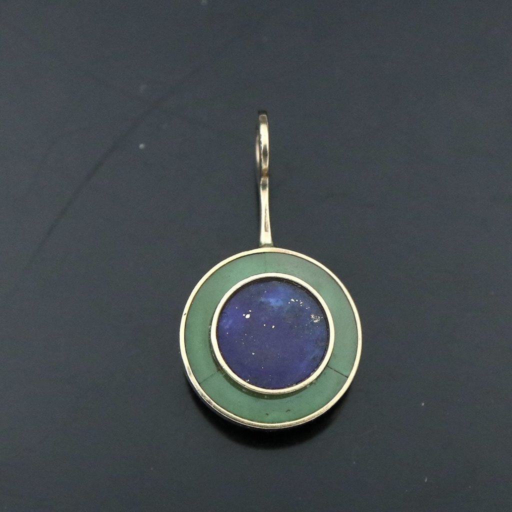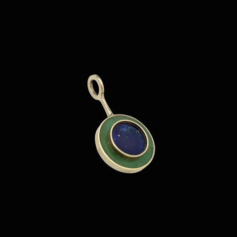 Text zugänglich auf Dänische: Ole Bent Petersen. Vedhæng i 18k guld med Nephrit & Lapis Lazuli.