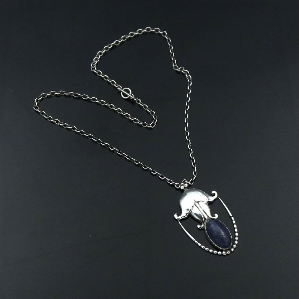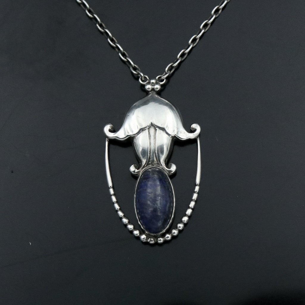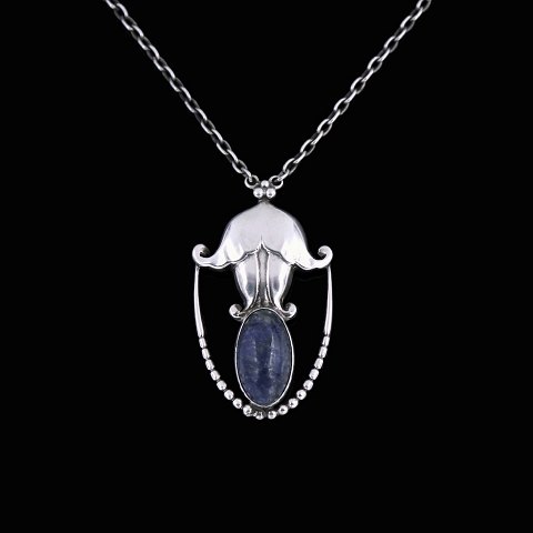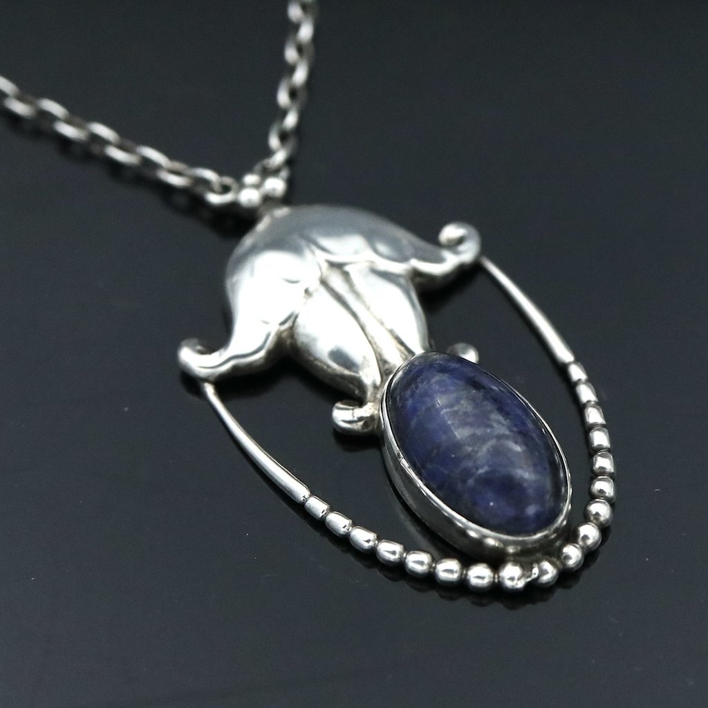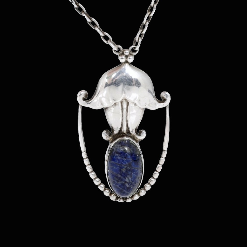 Text zugänglich auf Dänische: Georg Jensen. Vedhæng i sølv med Lapis Lazuli #42.