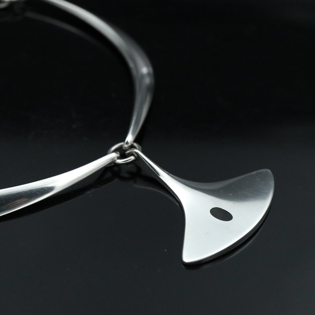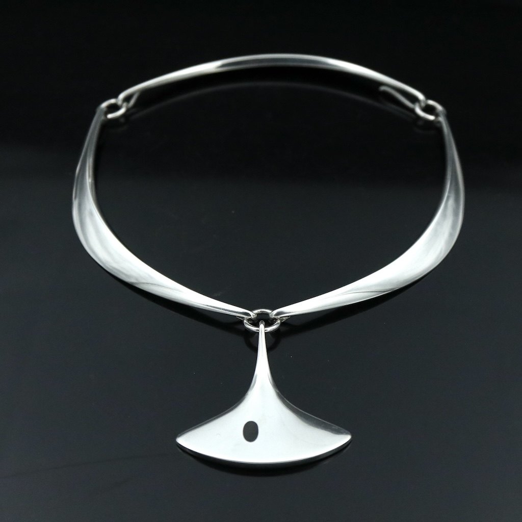 Text zugänglich auf Dänische: Hans Hansen. Halsring #320 i sterling sølv med emaljevedhæng #323 - Bent Gabrielsen.