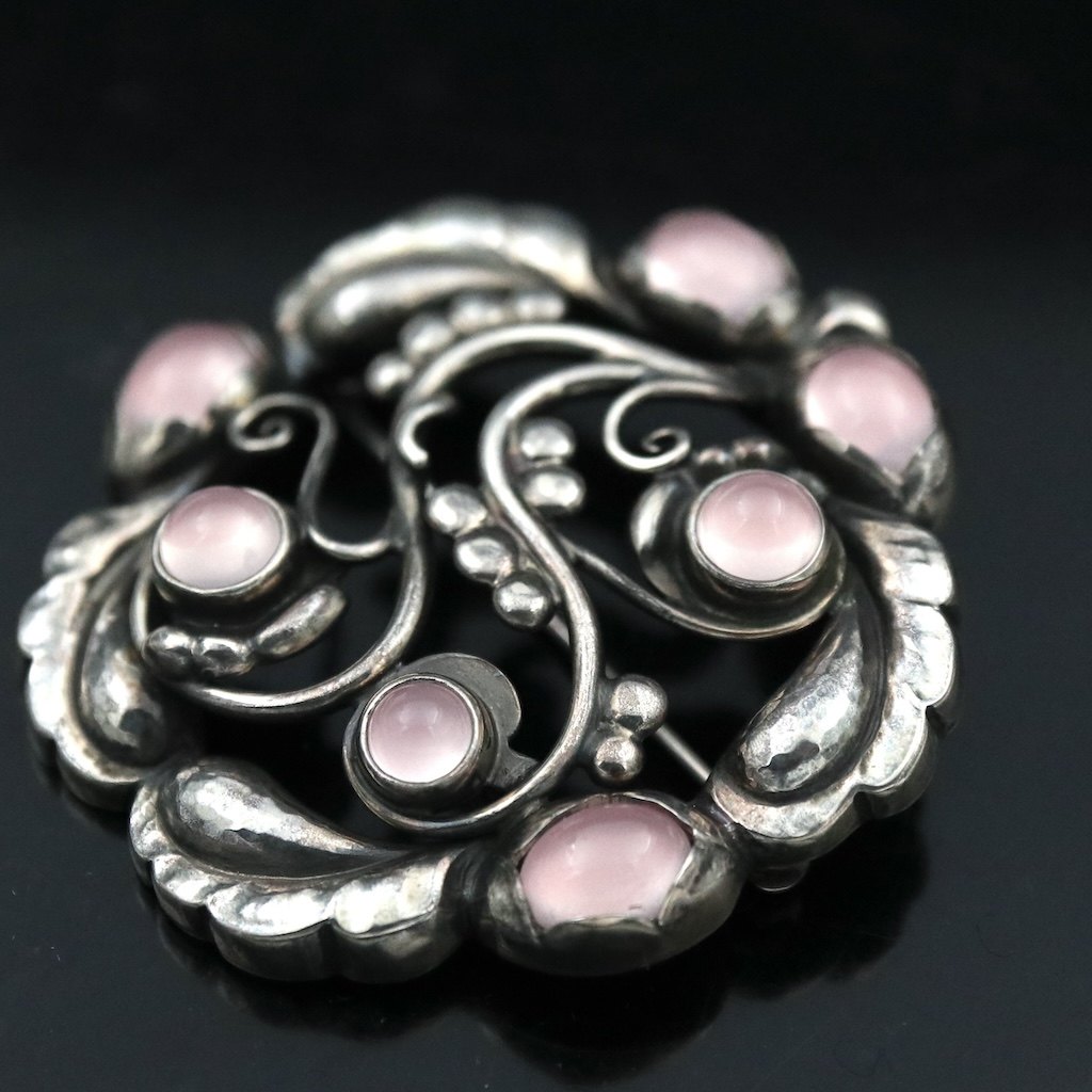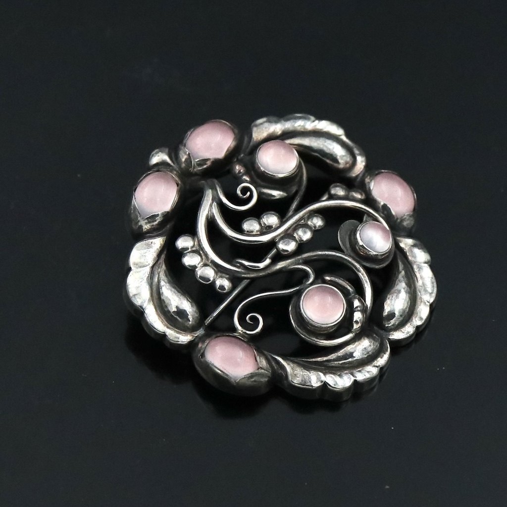 Text zugänglich auf Dänische: Georg Jensen. Broche i sterling sølv med rosa kvarts #159