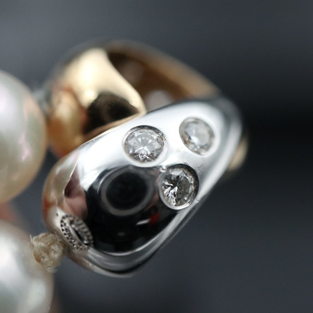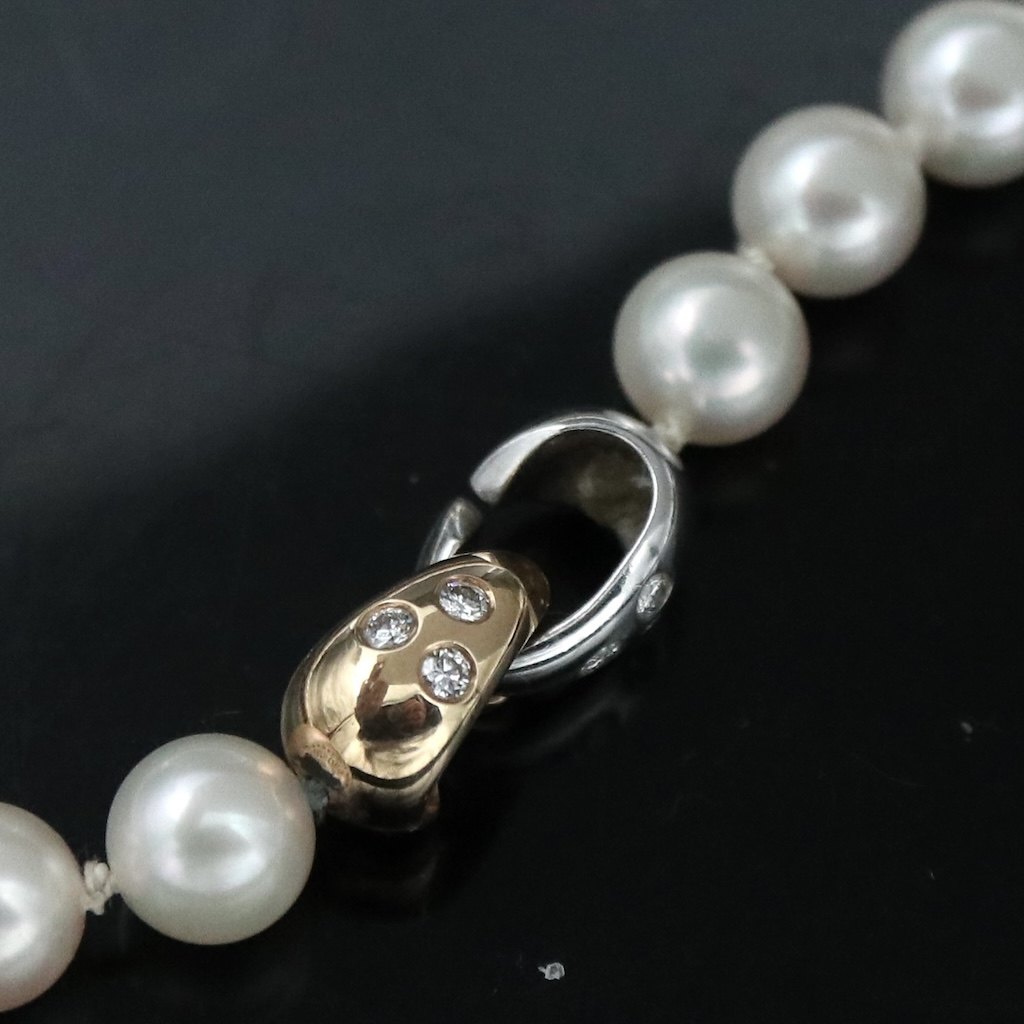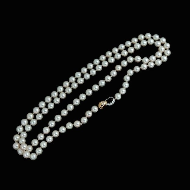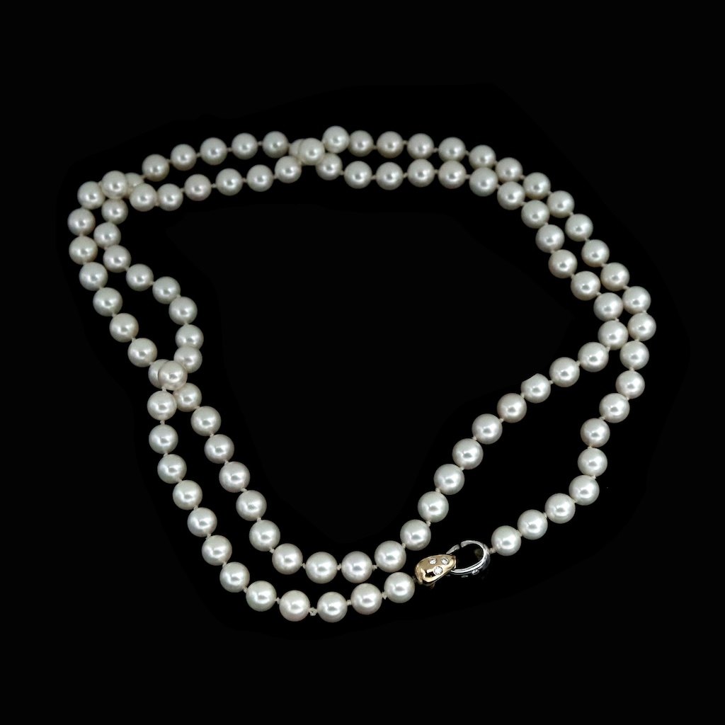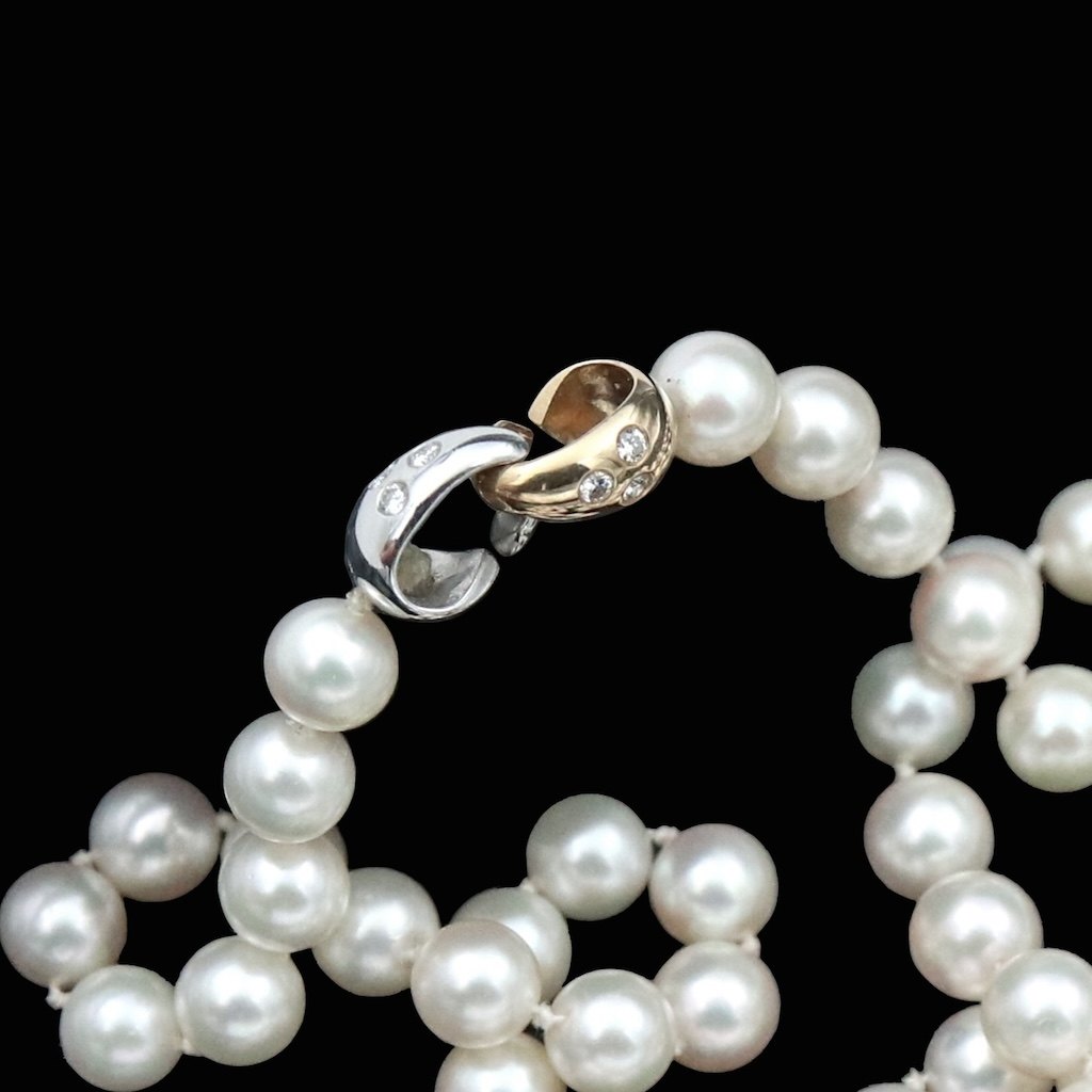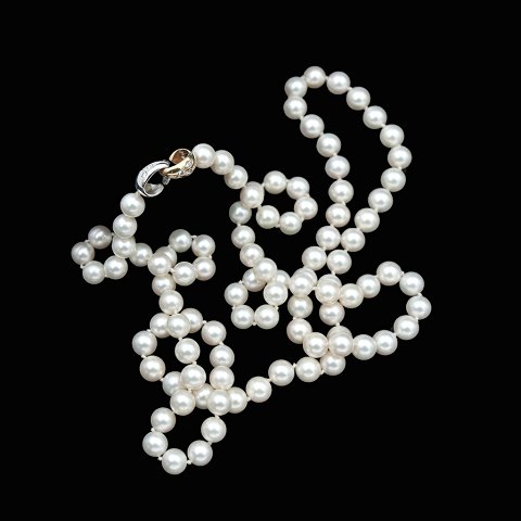 Text zugänglich auf Dänische: Georg Jensen. Unika perlekæde med lås i 18k hvid- og gulguld med brillanter.