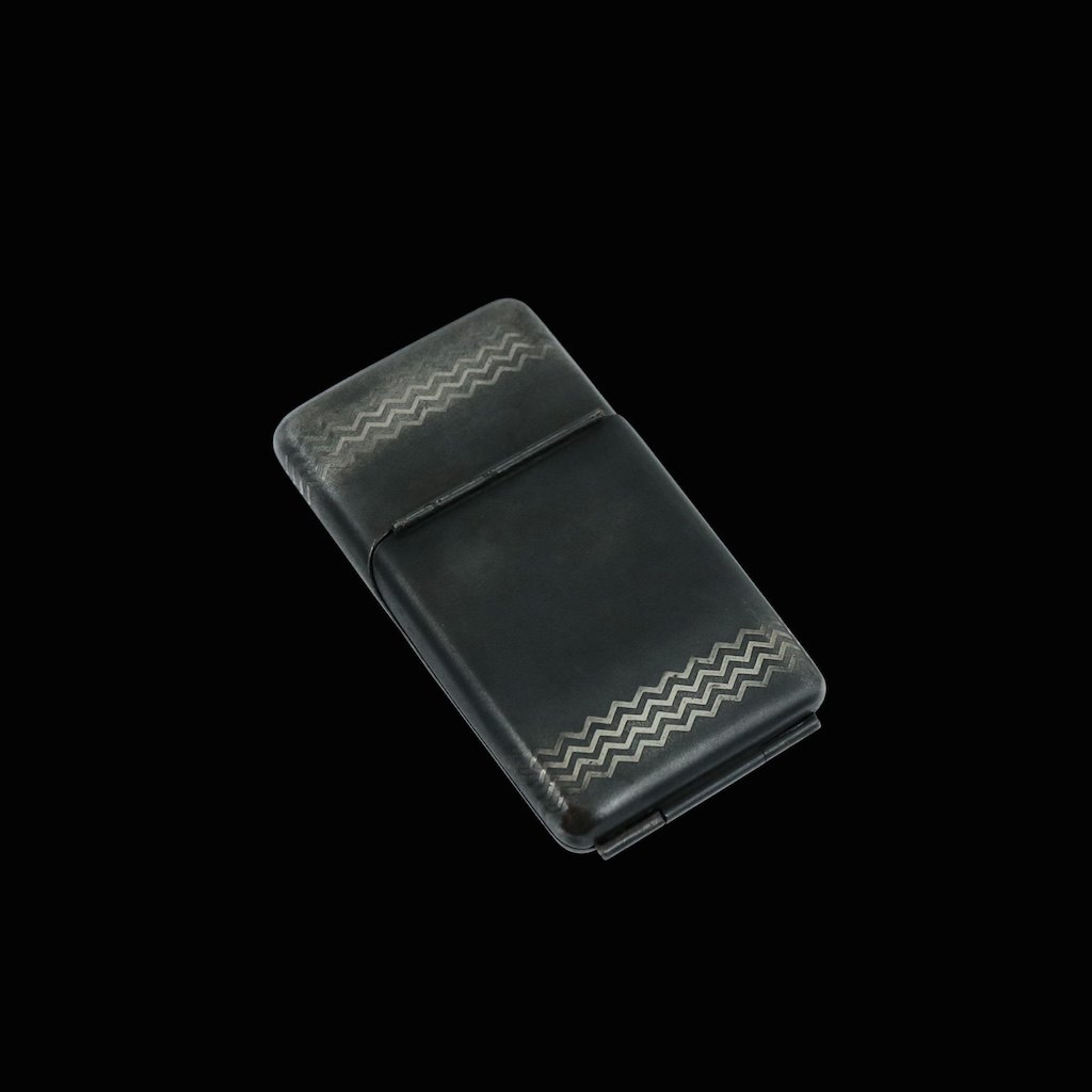 Text zugänglich auf Dänische: Georg Jensen. Etui i jern med indlagt sterling sølv #5102 - Arno Malinowski