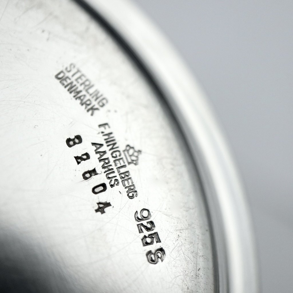 Text zugänglich auf Dänische: Svend Weihrauch 1899-1962 for F. Hingelberg. Flaskebakke i sterling sølv #32501.