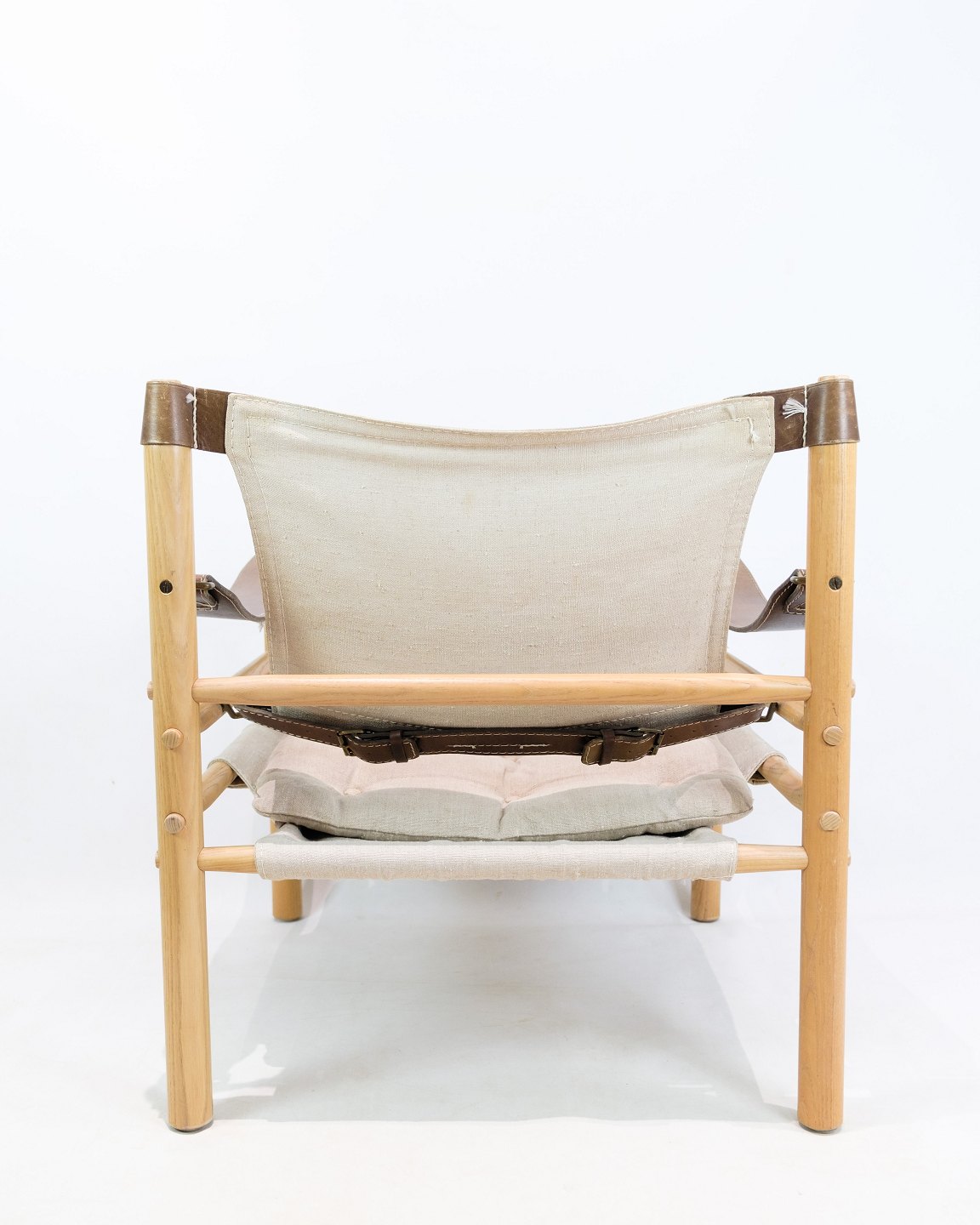 Text zugänglich auf Dänische: Klassisk sæt af 2 Safaristole, model Sirocco, designet af den anerkendte svenske designer Arne Norell og produceret af Norell Möbel AB i 1970’erne. Stolene er udført i solid eg med elegante samlinger uden skruer, hvilket giver dem et let og fleksibelt udtryk. Sæde og ryg er betrukket med slidstærkt canvas.